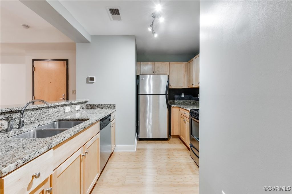 Stylish 1-Bedroom Condo in the Heart of Jackson Ward Live in one of Richmond's most vibrant and historic neighborhoods! This beautifully maintained 1-bedroom, 1-bath condo in Jackson Ward offers the perfect blend of character, comfort, and convenience. Step inside to an open-concept layout with modern finishes, tall ceilings, and natural light. The well-appointed kitchen features stainless steel appliances and ample cabinet space, opening to a spacious living area ideal for relaxing or entertaining. Enjoy premium community amenities including a rooftop deck with stunning city views, a peaceful courtyard, and a nicely equipped fitness room and deeded secure garage parking. Located just steps from dining, galleries, parks, cafes, and the arts and cultural scene that make Jackson Ward one of Richmond's most sought-after neighborhoods. This condo offers unbeatable value and lifestyle in the heart of the city.