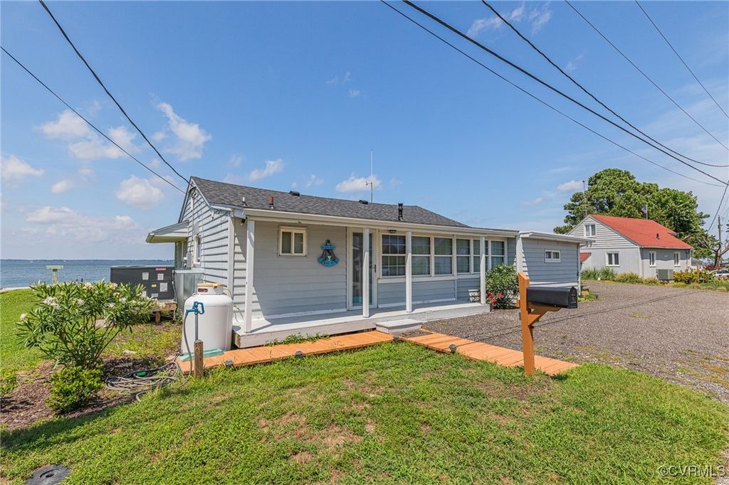 Welcome to the Rivah Life!! Million Dollar Views without the expense. Your Cottage is located at the mouth of the majestic Rappahannock River where it meets the Chesapeake Bay. Panoramic Views and gorgeous sunsets await. It's all been done with you in mind. We begin our tour in the huge Great/Sun room. Open and bright. This room boasts tile floors, tons of natural light, ceiling fans, exposed beam ceilings and picturesque views of the waterfront. The kitchen flows seamlessly to the dining area. Plenty of counter space, raised panel cabinets and gas cooking. All appliances convey!! Off the dining room is a bedroom currently set up as a bunk room for the kids. The primary bedroom has a remodeled ensuite bath and ample closet space. The second bath has been updated as well with tile flooring, new vanity and more. This property is on a double lot, which allows for tons of storage, great parking and fun for the whole family. The property boasts a maintenance free exterior w/ vinyl siding, insulated vinyl windows, insulated sliding glass doors a new dimensional shingle roof installed in 2024. Tankless water Heater in 2024. HVAC 2023. Fresh stain and boardwalk applied and laid in 2023. You will love the large patio. Perfect for sipping coffee or entertaining family and friends. You can be in before summer is over!!