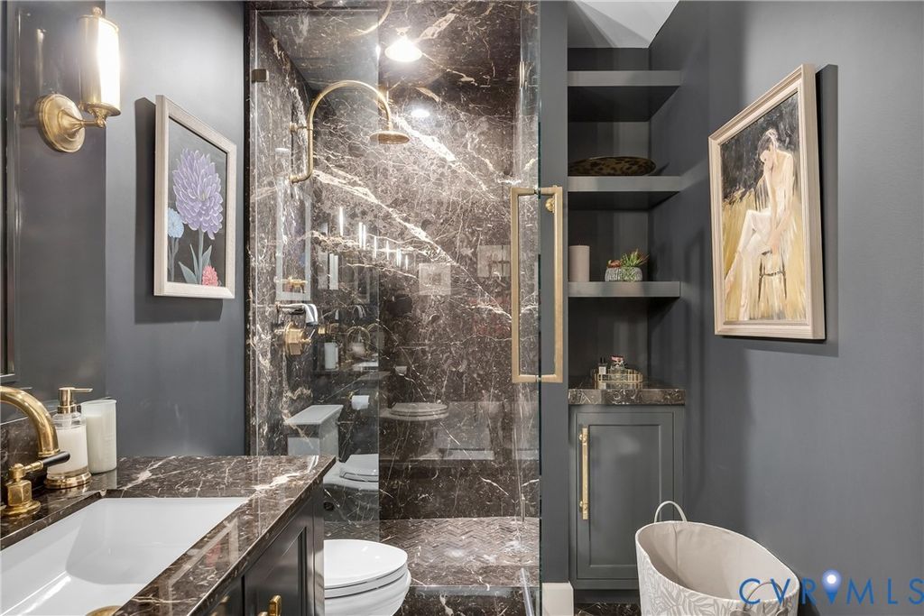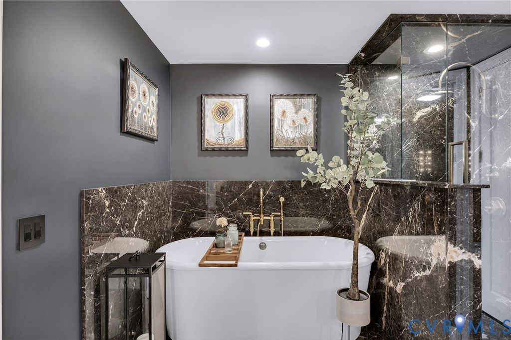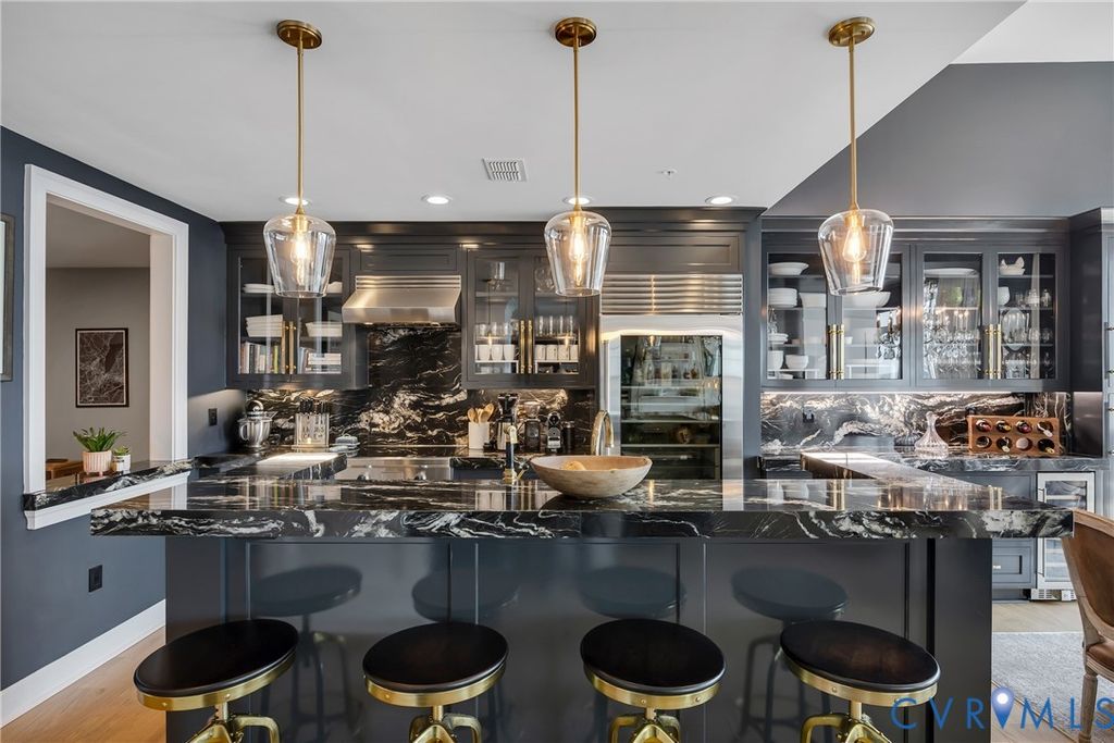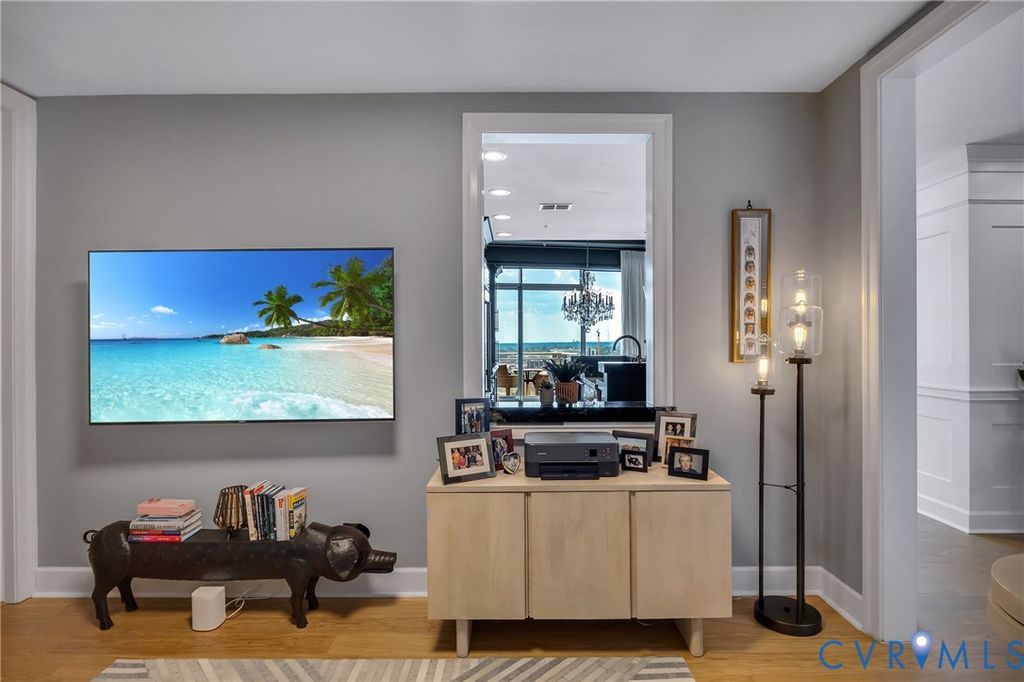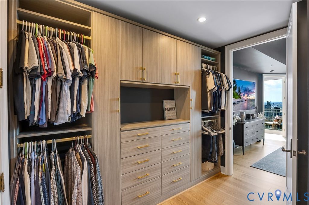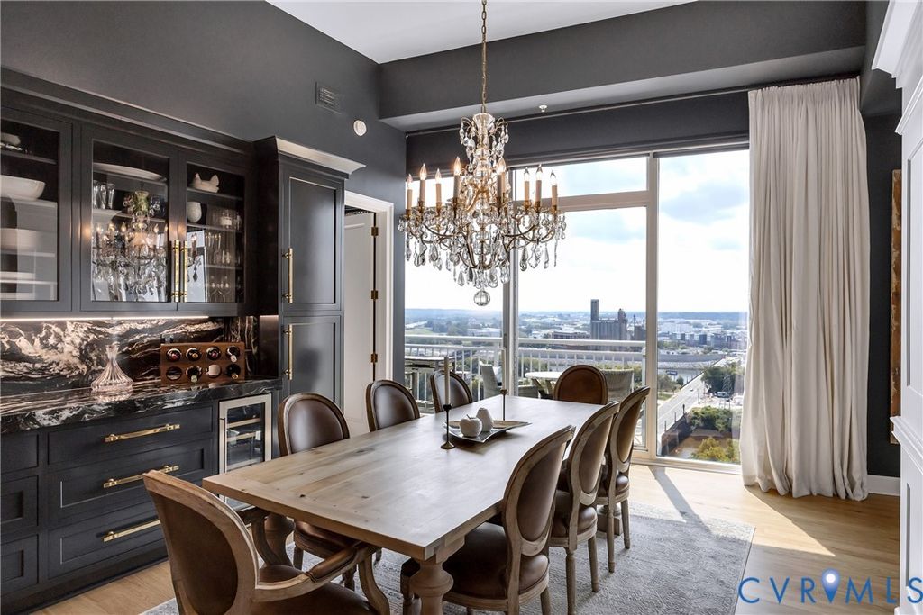 A Rare Penthouse with Sweeping River Views Welcome to the ultimate in luxury living at Vistas on the James. This penthouse isn't just a home; it's a statement. As a rare double unit on the top floor, this residence offers an unparalleled level of sophistication and space, all with commanding views of the James River. No detail was overlooked in the 2019 renovation, which included a full refresh with upgraded electrical with Leviton Renu. The result is a residence that exudes luxury, from the imported Noir Saint Laurent Marble from Italy gracing the baths, to the top-tier appliances, including a Wolf induction range, Cove dishwasher, and Sub-Zero refrigerator. The kitchen was expanded in 2024 to include a new wine cooler and a pantry. All plumbing fixtures are by Waterworks, including a stunning 70" freestanding tub, and solid brass hardware from Rocky Mountain Hardware. The primary bathroom features a fully automatic Toto toilet. All custom-built kitchen cabinets, bathroom vanities, and built-in bookcases were made with meticulous care, and the interior trim was upgraded throughout. The open floor plan is perfect for entertaining. The rich Bjelin natural oak floors and elegant crystal chandeliers create an atmosphere of refined elegance. With power shades and custom drapes by Specialty Drapery, you can effortlessly control the light and ambiance in every room. The unit includes two spacious bedrooms plus a lounge/office with an ensuite bath. All closets are custom-built, including the bedrooms, coat closet, and laundry/linen closet. Life at the Vistas also comes with exceptional amenities. You'll have two dedicated garage parking spots, one with EV charger wiring, a secured storage unit, and access to a 24-hour security team, a club room, and a well-equipped gym overlooking the Kanawha Canal. The washer and dryer are new, and both HVAC systems were replaced in 2023. This is more than a home"”it's a lifestyle.