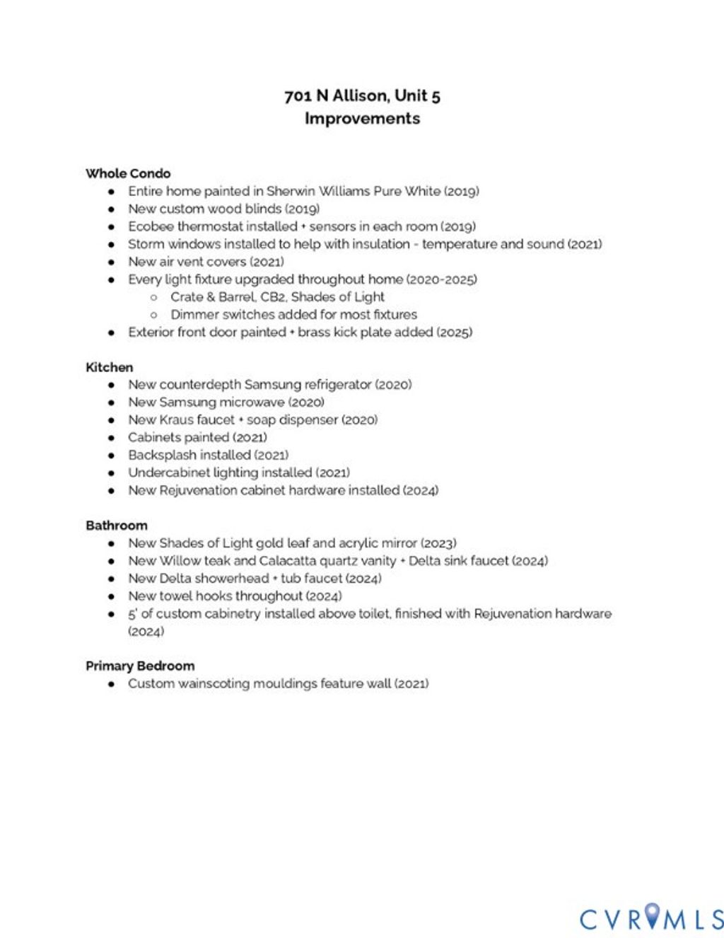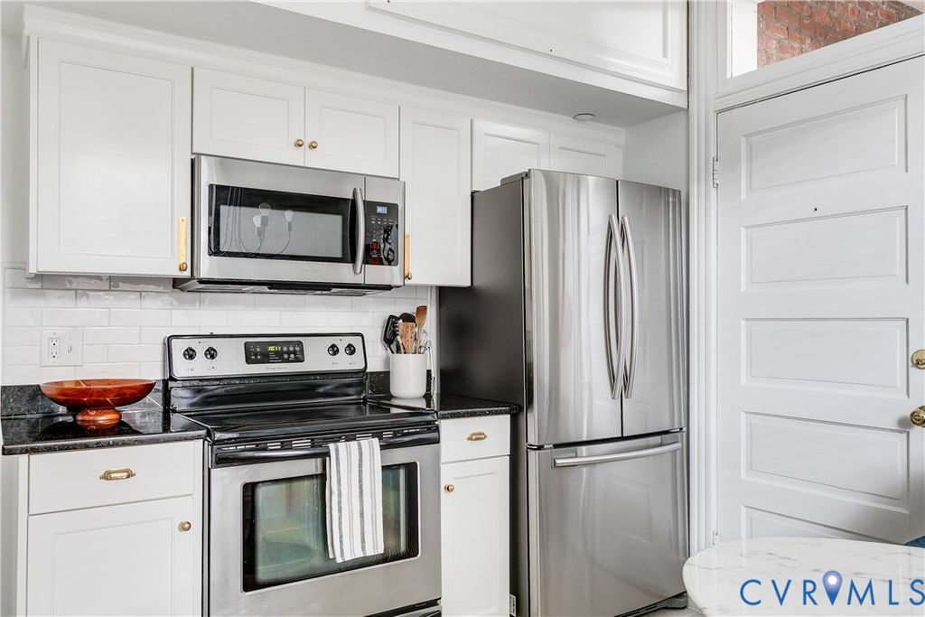 This wonderfully updated 2-bedroom, 1-bath condo blends historic character with modern upgrades, all within steps of Whole Foods, VCU, the forthcoming Diamond District, and some of Richmond's celebrated restaurants and cafes. Inside, you'll find hardwood floors, 9-foot ceilings, and abundant natural light. The condo's freshly painted front door with new brass kickplate sets the tone for the home's polished, stylish feel. The condo opens to a living room featuring a gas fireplace and original mantel. The large eat-in kitchen has been transformed with painted cabinetry, new Rejuvenation hardware, tile backsplash, under-cabinet lighting, faucet, and Samsung appliances, including a counter-depth refrigerator and microwave. The bathroom shines with a new teak vanity, mirror, faucets, showerhead and custom cabinetry for added storage. The primary bedroom features a custom wainscoting accent wall and a large walk-in closet with ample storage. Additional highlights include fresh interior paint throughout, custom wood blinds, storm windows for improved insulation, and a smart Ecobee thermostat with sensors in every room. Every light fixture in the unit has been replaced, with dimmer switches added for most. The building also features a balcony and basement storage. The condo was recently featured in Apartment Therapy. With its walkable location, historic charm, and long list of recent improvements, this condo offers the best of Fan living "” style, convenience, and comfort, all completely move-in ready.
