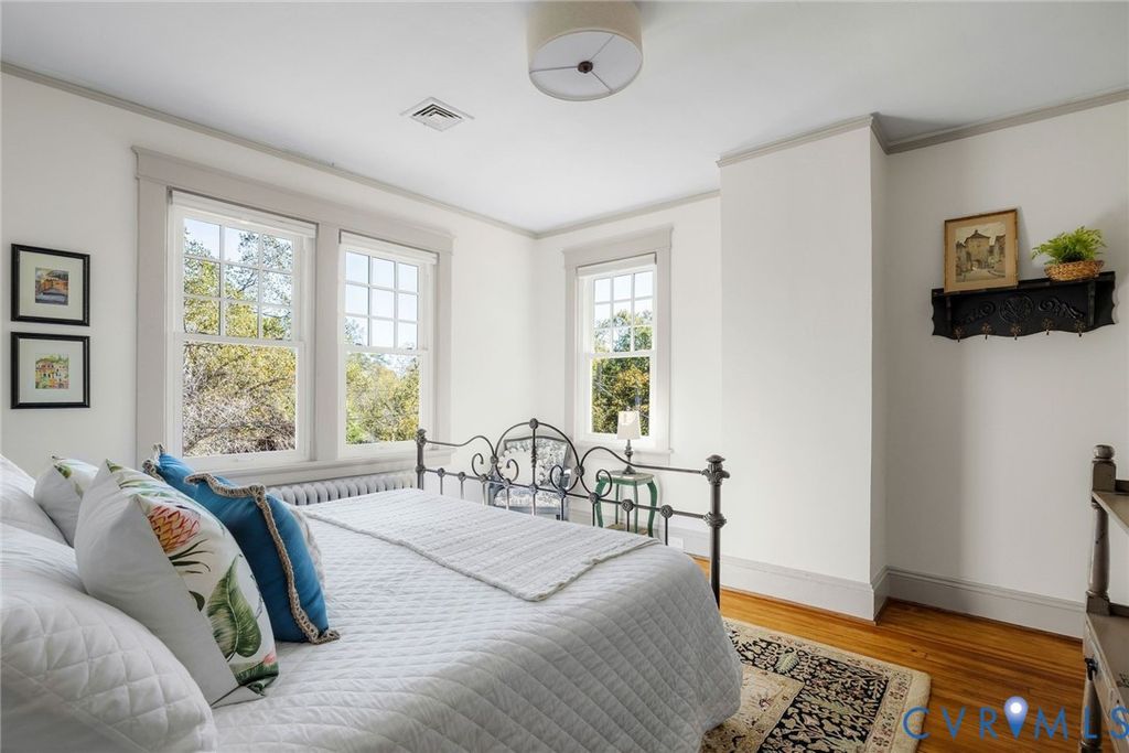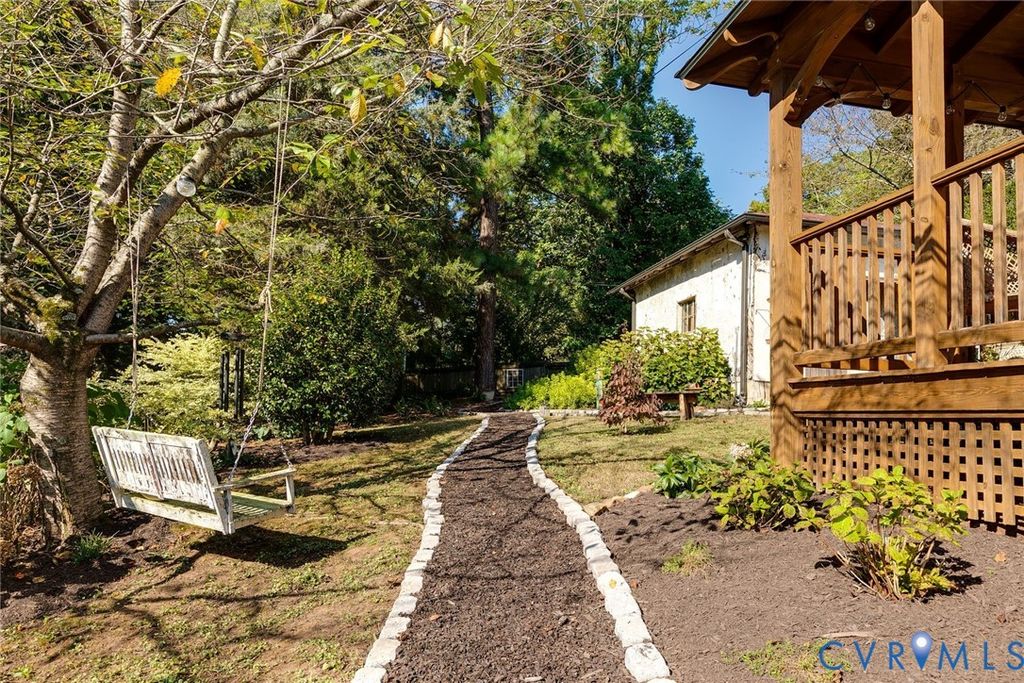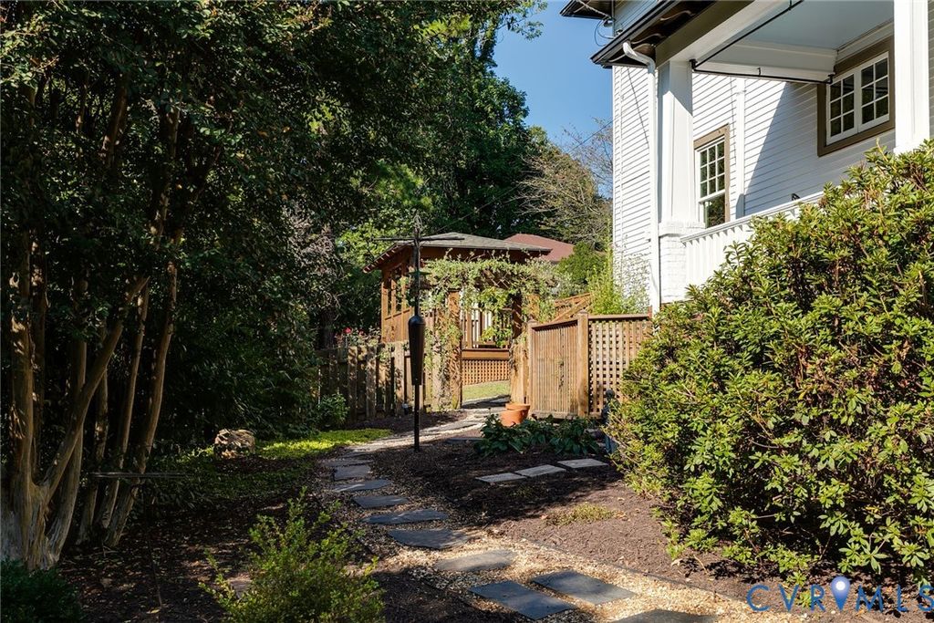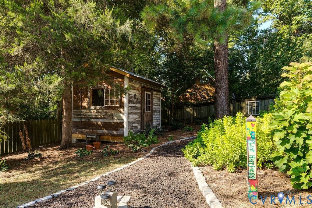 In the heart of Woodland Heights, you won't find a more perfect setting to call home. This historic community is filled with nature, music and river lovers who celebrate their unique architecture, landscapes and each other. Sip coffee from the Southern wrap around front porch, chat with the friendliest of neighbors, easily access the James River rapids, Forest Hill Park's farmer's market and hiking trails, WPA Bakery or Laura Lees restaurant, or take an easy bike commute to downtown. This picture perfect Craftsman has been meticulously preserved with original hardwood floors, millwork and two decorative fireplaces, while lovingly updated with modern amenities such as the well designed kitchen with quartz counters, fresh green cabinets and stainless appliances; a luxe primary bathroom with private dressing room (that could double as a nursery or office), updated lighting and electrical, fresh paint inside/out, new water heater, insulation and solar powered attic fan and updated windows with high end blinds. Enjoy the professionally landscaped backyard oasis complete with multiple conversation areas, refreshed deck with gazebo and slate patio perfect for hosting one of the neighborhood's Tiny Porch Concerts. Extensive storage options include a naturally lit, clean basement with tons of potential for a playroom, workout space and home office, a detached 1.5 car garage with electricity and insulation for any of your hobbies and a custom built reclaimed wood sided shed for additional garden tools, kayaks and bikes. There's a private cul-de-sac alley for accessing the garage. For those seeking the laid back South of the River lifestyle, this home is a dream come true.