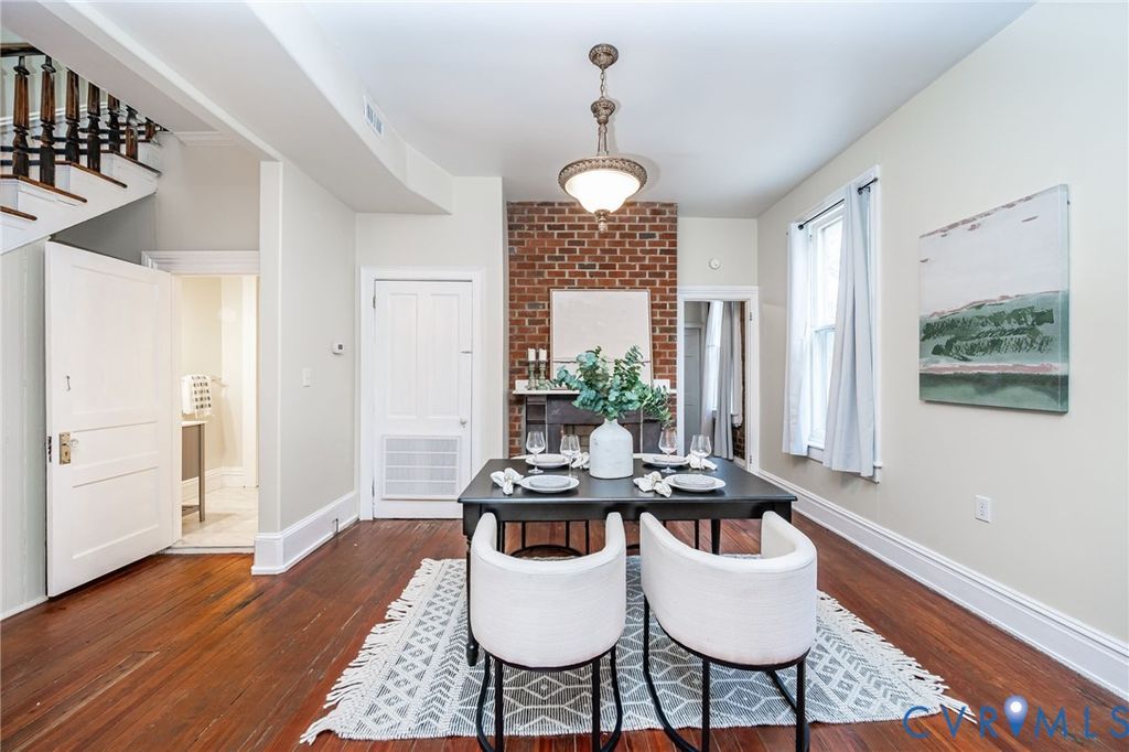 Individual rooms can be rented out to students... Welcome to this delightful two-story brick home, perfectly situated in the heart of Richmond, VA, directly opposite the Virginia Commonwealth University (VCU) campus. This property offers a unique blend of historic charm and modern amenities, making it an ideal investment opportunity or a cozy residence for those who appreciate character and convenience. Featuring 3 spacious bedrooms, 2 full bathrooms, and 2,058 sq ft of living space and is located in the prime Fan District. The interior is a harmonious blend of rustic and modern elements, with high ceilings and a prominent brick fireplace in the living room, hardwood floors throughout, and a functional kitchen boasting stainless steel appliances, dark speckled granite countertops, and gray cabinets. The exposed brick wall and intricate white patterned ceiling add rustic charm, while modern fixtures ensure functionality and style. Each bedroom offers comfort and tranquility, with exposed brick walls in some rooms and large windows that flood the space with natural light. The master bedroom features a cozy fireplace, perfect for relaxing evenings. Recent upgrades include a sump pump and vapor barrier added to the basement in 2022, a roof inspection in 2021, and realignment of the back door and windows in 2024The exterior is constructed from reddish-brown bricks, exuding a timeless and robust appearance, with a small, covered front porch featuring white wooden pillars and lattice railing. The minimal front yard, bounded by the sidewalk and a strip of greenery, is easy to maintain and enhances the property's curb appeal. The vibrant neighborhood offers a variety of restaurants, shops, and public transportation options, making it ideal for students, faculty, or anyone looking to be in the heart of the action. Don't miss out on this unique opportunity to own a piece of Richmond's history while enjoying modern comforts and a prime location. Individual rooms can be rented out to students