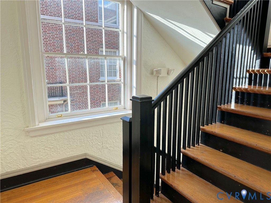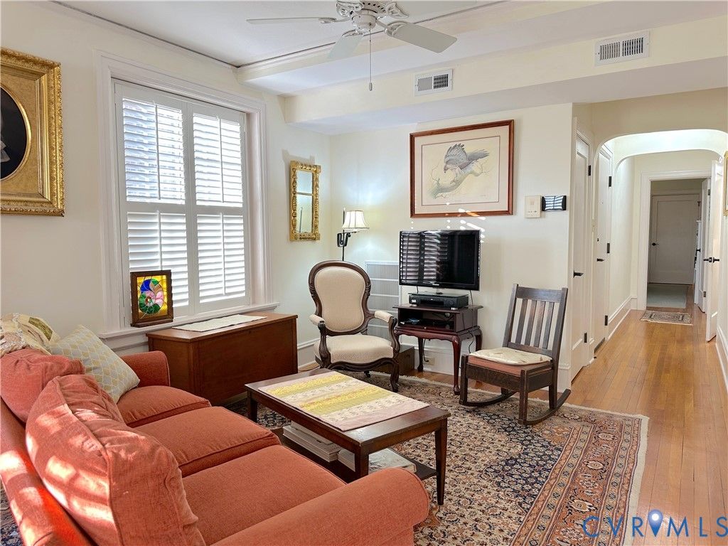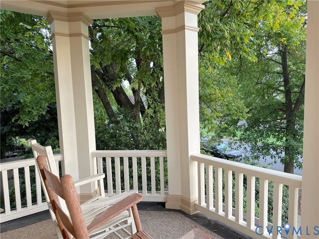 Don't miss this great opportunity to buy U204 in Monument Terrace Concos! This one is in a great location in the building facing south with windows in 3 sides making it sunny and bright. Glass doors from the living room & dining room lead to a wonderful covered front porch with a nice view of the sunset. The nicely updated kitchen has granite countertops & a bar top at the opening between the kitchen and dining room. Newer Stainless steel appliances all convey.There is Gas cooking, lots of counter top space and some under the cabinet lighting + ceramic tile floors there & in the bathrooms. Beautiful hardwood floors throughout and plantation shutters on the windows. The full bath is large with a double sink vanity + a window. The jets on the tub convey 'as is'. The bedrooms have closets and ceiling fans. There is a large coat/storage closet at the entry and a half bath down the hall. There is a workout room set up in the basement as well as a room with storage units. They are finishing up all repairs +painting on the outside of the building now. there was an assessment that the owner has already paid and the monthly HOA fee just went up, so that shouldn't happen again for quite a while. Monument Terrace is located conveniently between Carytown, Scotts addition, The Fan and the near West End. You will love living here!