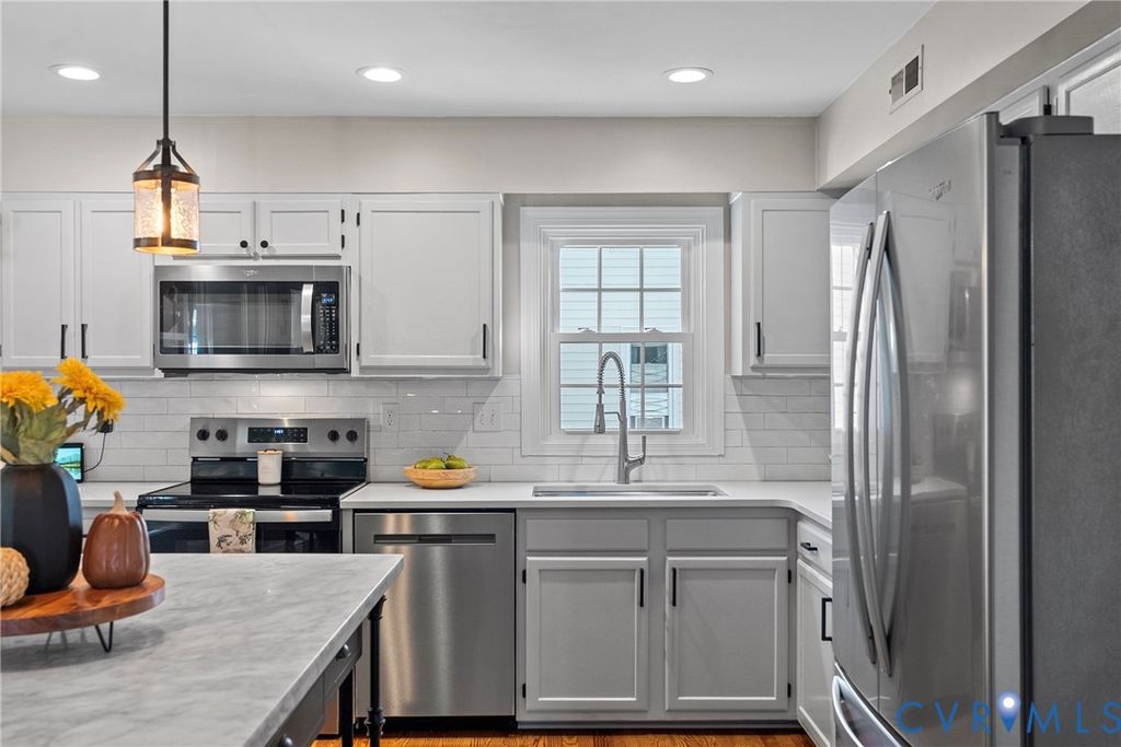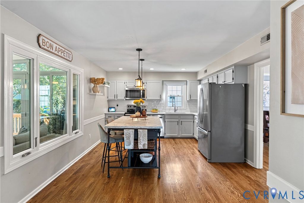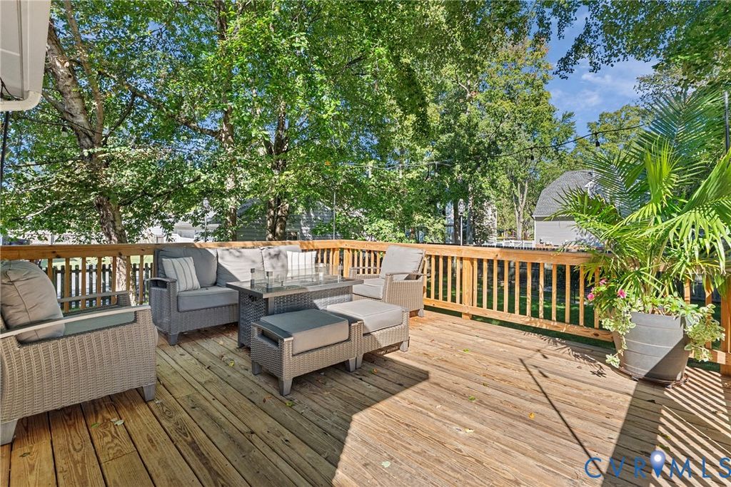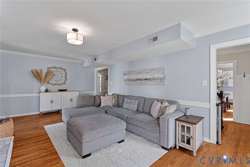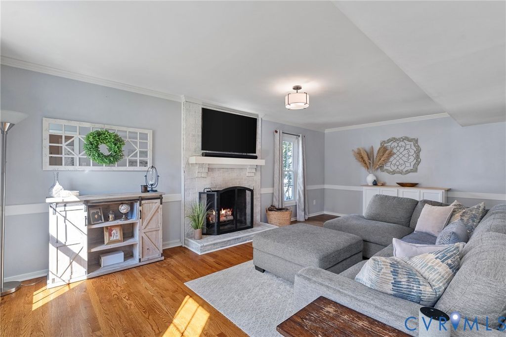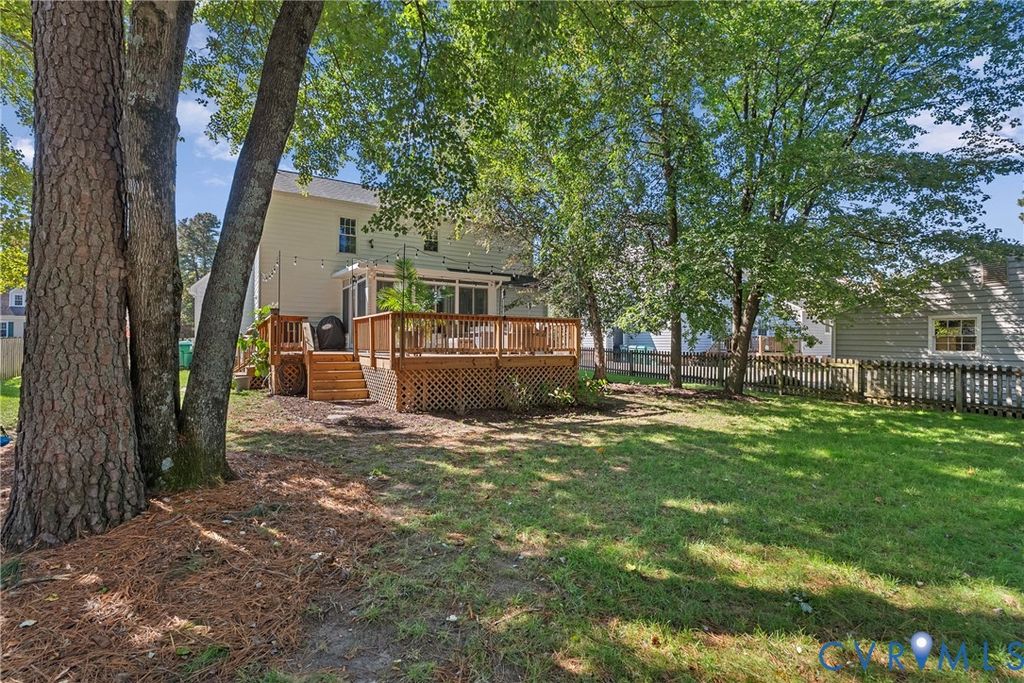 The moment you step inside, you'll fall in love with the character and thoughtful touches that make this home so special. The foyer greets you with beautifully refinished hardwood floors that flow throughout the first level. To your right, a spacious formal dining room awaits -perfect for hosting dinner parties or easily transformed into a stylish home office. Elegant crown molding enhances many rooms downstairs and leads you to the inviting, large family room, featuring classic chair rail detail and a whitewashed brick fireplace that's simply picture-perfect. The newly renovated kitchen will steal your heart with updated cabinets, quartz countertops, and a custom island large enough for family gatherings. (It's even movable, offering flexibility for your own design dreams!) Just beyond, the sunroom provides year-round comfort with its own heating and cooling "” ideal for lazy weekend mornings, game-day hangouts, or soaking in natural light. Step outside to find two connected decks, perfect for grilling, entertaining, or simply basking in the sunshine. The fully fenced backyard offers plenty of space for play, pets, or gardening. For your comfort and piece of mind, the crawlspace is fully encapsulated with a dehumidifier as well. Plus there is an additional attached storage space perfect for storing even more items! Upstairs, the primary suite impresses with abundant natural light and a fresh, airy ensuite featuring modern finishes and a bright skylight. Two additional bedrooms charm with custom wood accent walls, adding warmth and personality. Nestled in the highly sought-after Glen Allen area, this home offers easy access to top-notch shopping, dining, and major routes including I-64 and 295. Full of upgrades, charm, and warmth, this home is 100% move-in ready and waiting for its next owner to fall in love "”just like you will the moment you walk through the door.