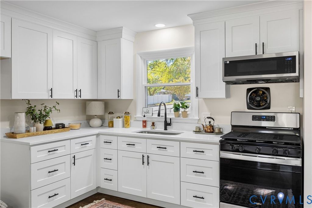 Welcome to this charming brick rancher that has been meticulously updated, featuring a brand-new HVAC system and new plumbing throughout, ensuring comfort and efficiency year-round. As you enter, you'll be greeted by an open floor plan with beautifully refinished hardwood floors in the main living spaces, creating a warm and inviting ambiance. The renovated kitchen is a true highlight, showcasing new engineered wood floors, elegant quartz countertops, and modern cabinetry. It comes equipped with a new stove and microwave, as well as a deep stainless steel sink, making it a cook's dream. The morning room off the kitchen is the perfect place to sip your morning coffee and enjoy the sunlight that comes through the new double glass doors that lead to the patio. This home offers three bedrooms and two full bathrooms. The hall bathroom has been thoughtfully updated with a quartz countertop vanity and beautiful mosaic floor tile, and a new toilet. The private primary en-suite bathroom features a new sink and a shower. The good-sized laundry room off the kitchen can also serve as a mud room since it has backyard access. Additional upgrades include fresh paint throughout, brand new windows that allow natural light to flood the interior, new double glass doors leading to the patio, and a new fence in the backyard, providing a private outdoor retreat. This brick rancher combines classic charm with modern conveniences, making it the perfect place to call home!