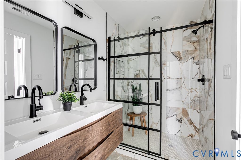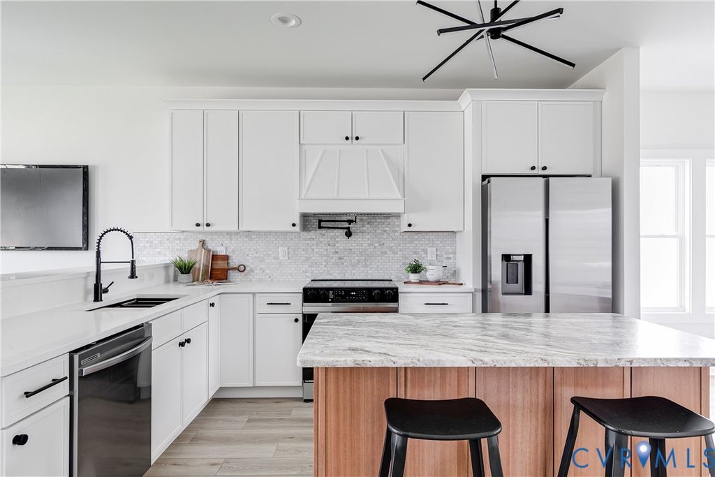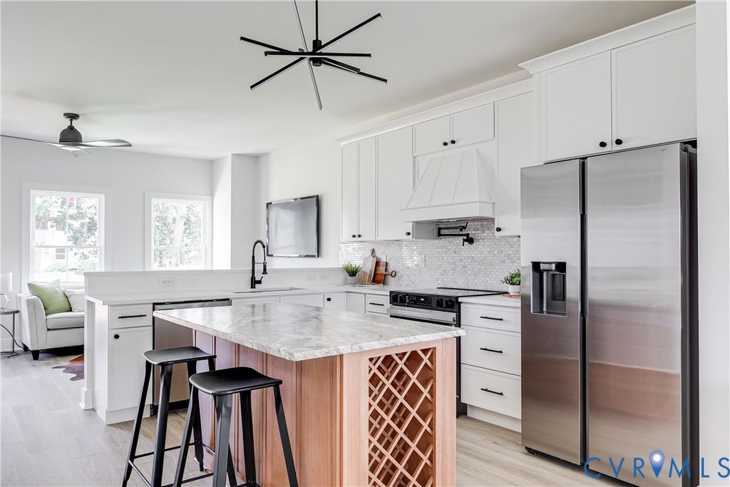 Stunning new construction in RVA's vibrant Northside! This modern A-frame home blends thoughtful design with on-trend custom finishes throughout. Featuring 3 spacious bedrooms, 2.5 baths, 9-foot ceilings, recessed lighting, and a sleek layout "” this home is made for stylish, comfortable living. The main floor offers great flow from the living room into a beautifully designed eat-in kitchen that's perfect for entertaining. The kitchen boasts stainless steel appliances, white shaker-style cabinetry, dovetail soft-close drawers, granite countertops, a tile backsplash, pantry, and a massive island and peninsula with bar seating. Upstairs, the expansive primary suite sits privately at the rear of the home and includes recessed lighting, a walk-in closet with custom shelving, and a gorgeous en-suite bath with a double vanity and tiled walk-in shower. At the front of the home are two additional bedrooms and another full bath with stylish finishes. Out back, you'll enjoy a huge fenced-in yard, brushed concrete patio, and off-street parking "” perfect for outdoor gatherings or relaxing in privacy. Located near local favorites like The Smokey Mug, Fuzzy Cactus, and Ruby Scoops, this home puts you right in the heart of one of Richmond's most exciting neighborhoods!