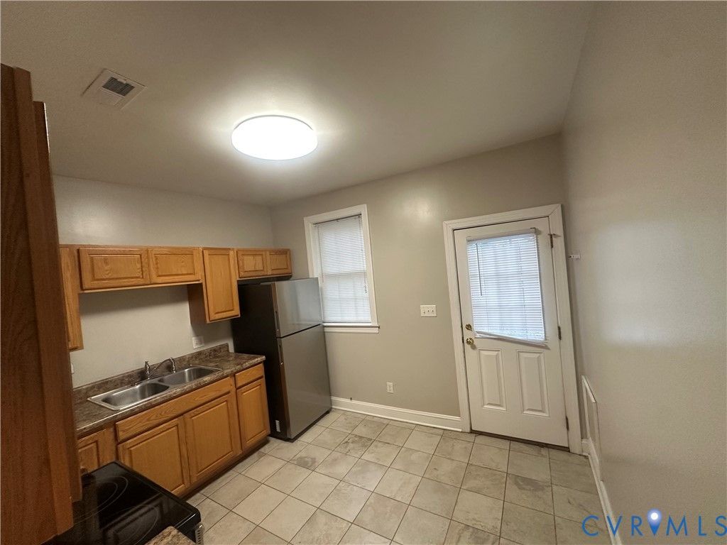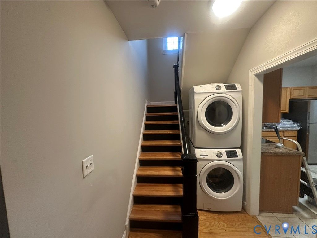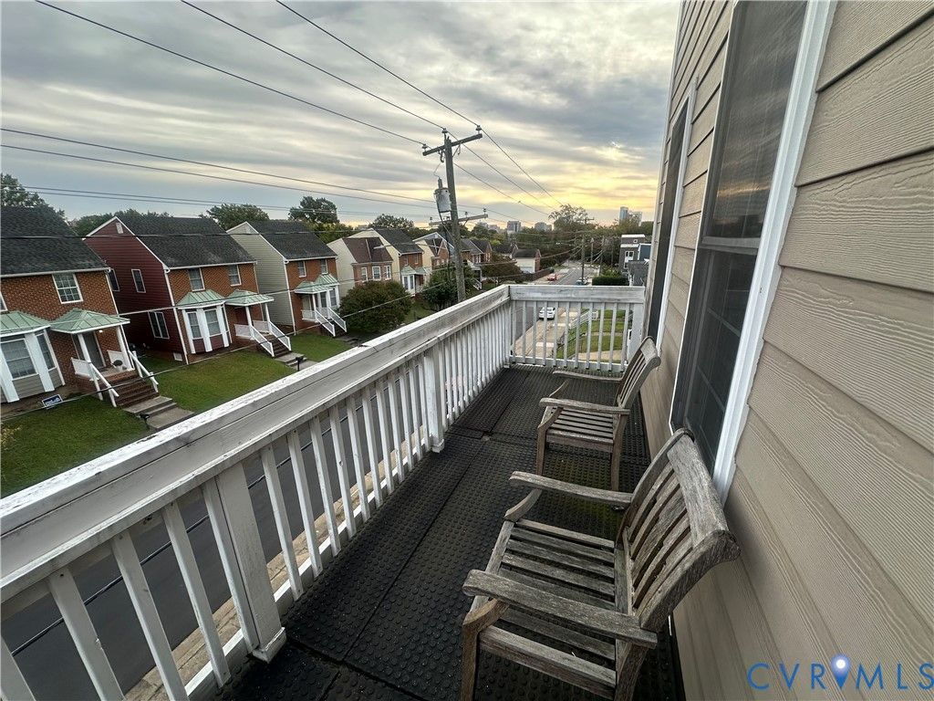 Amazing access to downtown, VCU, FAN and Maymont. This updated house has a front two story porch that you have views of downtown and rear deck with parking at the rear. Each floor has a full bath with a tub. Also, great opportunity for rental, first floor rooms could be used as bedrooms as well. Each floor has a long shoot gun hallway leading to the front porch. This is a great location for walks through Hollywood Cemetary, Petronius S. Jones Park, Texas Beach and Maymont. House was completely rebuilt in 2017. New shower on first floor in 2025, roof is estimated have been installed in 2017. Spacious kitchen with tile floor stainless steel appliances and access to rear deck. Stacked front load washer and dryer. First floor family room can also be used as a bedroom.