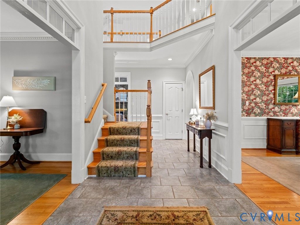 Prettiest home is Brandermill! Unwind on this charming front porch, sipping sweat tea and taking in the peaceful neighborhood. Custom built and first time being offered for sale! This 5-bedroom, 4.5-bath, 4,431 SqFt home was thoughtfully designed from top to bottom. Built with care and function in mind, it features 9-foot ceilings throughout and a layout that balances everyday comfort with plenty of space for gathering. The main level includes an inviting sitting area, formal dining room, and a kitchen designed for both daily living and entertaining. Whether you're cooking, relaxing, or hosting guests, this floorplan has it all. Just off the main living area, you'll find the first-floor primary suite with brand new wood floors. The suite includes 2 walk-in closets and a private bath, creating a comfortable space away from the upstairs bedrooms. Upstairs you'll find 3 additional bedrooms with ample space for family, guests, or a home office. Bedroom 2 & 3 have a Jack-N-Jill bathroom connection. Bedroom 4 has a private attached bathroom, separate space for a cozy kids play space or teen office, & a HUGE walk in closet!! The finished basement adds another level of living space, perfect for a recreation area, home gym, media room, or guest quarters. It also includes a full bath, providing flexibility for whatever your needs may be. Fenced rear yard backs up to Thompsons Creek with TONS of privacy. Located on a quiet, well-kept street, this custom home stands out for its solid construction, practical layout, and timeless design. With plenty of room across all three levels and a floor plan that fits a variety of lifestyles, this property offers a great opportunity to own a quality-built home that's never been on the market before. Recent updates include roof 2023, exterior paint 2023, interior paint in the foyer and living rooms 2025, hardwood floors installed to match in the primary bedroom 2025, water heater 2021. Seller is a licensed broker in the commonwealth of Virginia. Don't wait, schedule your showing today!