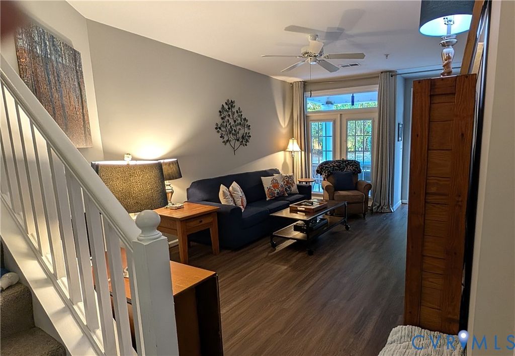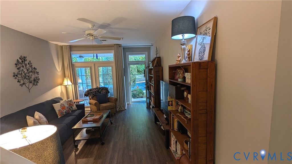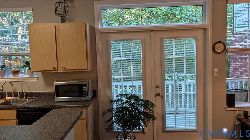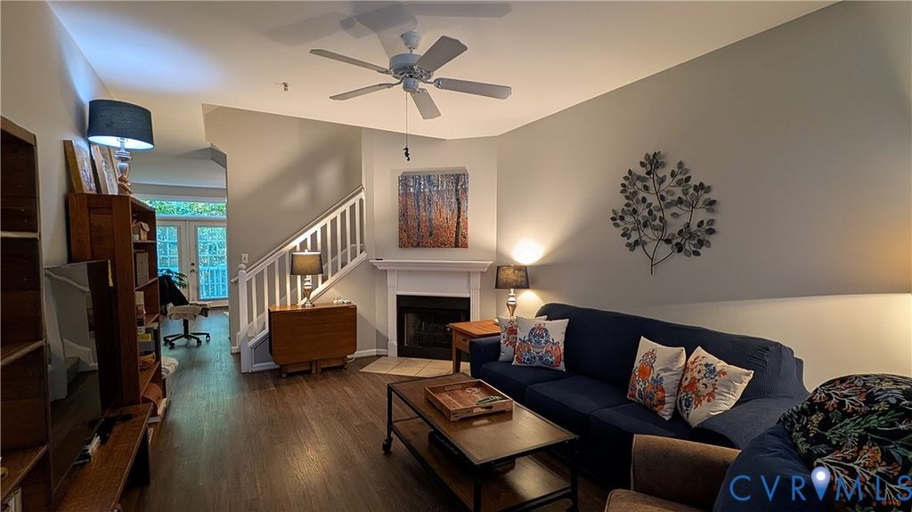 Charming two story town house full of light. Open floor plan on first level. French doors in great room open to front porch. Dining area has French doors with private wooded view. Well-designed kitchen with island, loads of cabinets, dishwasher & room for sharing cooking duties. Upstairs are two big bedrooms, each with ensuite baths, one with garden tub, the other with step-in shower. Walk-in closets in both. The loft could be home office, craft space or reading room. In bad weather, you'll appreciate the attached garage. Located in the village of Midlothian, you're minutes from 288, Midlothian Turnpike, and other highways but also near the new Coalfield library, Coal Mines Park, Brightpoint Community College, shopping, restaurants and other amenities.