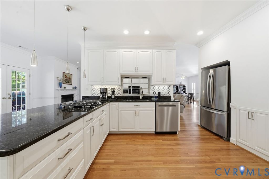 Where timeless design meets everyday ease! Nestled in the sought after Coventry neighborhood in Henrico's West End, this stunning single family home offers the rare advantage of first-floor living with modern upgrades and an open concept design. Beautiful hardwood floors, recessed lighting, and plantation shutters flow throughout the main level, creating a warm and polished look. The inviting family room features a gas fireplace and French doors leading to a maintenance-free Trex deck with a piped-in gas grill, overlooking a fully fenced and landscaped backyard, perfect for outdoor living and entertaining. The kitchen is designed for both style and function, featuring granite countertops, gas cooking, a wall oven, and plenty of cabinet and pantry storage. The laundry room includes a washer and dryer, utility sink, and space for an additional refrigerator or freezer. The first floor primary suite offers a private rear entry, a custom walk-in closet with built-in shelving and lighting, and a luxury ensuite bathroom with a tiled walk-in shower, rain shower head, and double granite vanity. Two additional bedrooms with oversized closets are serviced by a tiled hall bath and complete the first level. Upstairs, you'll find a secondary primary suite with a sitting area and full bath, ideal for guests, a teen suite, or a private home office and a large floored walk-up attic offering exceptional storage or future expansion potential. Additional highlights include an oversized two-car garage, whole-house natural gas generator, open pantry, and loads of natural light throughout. Located just minutes from Short Pump Mall, top-rated Henrico County schools, dining, and major highways, this home blends location, lifestyle, and low-maintenance living. 11904 Brandyview Drive is the perfect balance of comfort, flexibility, and modern design! Come see why it stands out among West End homes for sale, schedule your tour today!