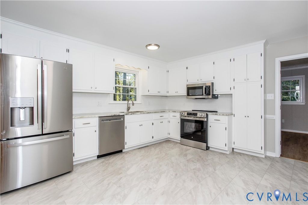Beautifully renovated spacious rancher in Enon with an easy walk to Enon Elementary. Wonderfully renovated with a surprising amount of space and a huge rear yard. NEW IN 2025: Refinished Wood Floors, LVP, Granite Countertops, Appliances, Both Bathrooms Completely Renovated, Interior Paint, Lights, Ceiling Fans, Plumbing Fixtures, 200 amp Electrical Panel Box, Water Heater, Rear Patio and more! Previous updates approx. 2017 include: Dimensional Roof, Trane Heat Pump, Vinyl Windows, Vinyl Siding and Aluminum Gutters with Gutter Helmet. Prime location with easy access to all major highways, Fort Lee and schools. If you have grade school children, skip the bus and the parent pick up line, this home sits directly behind the school making it a convenient 2 minute walk to school.