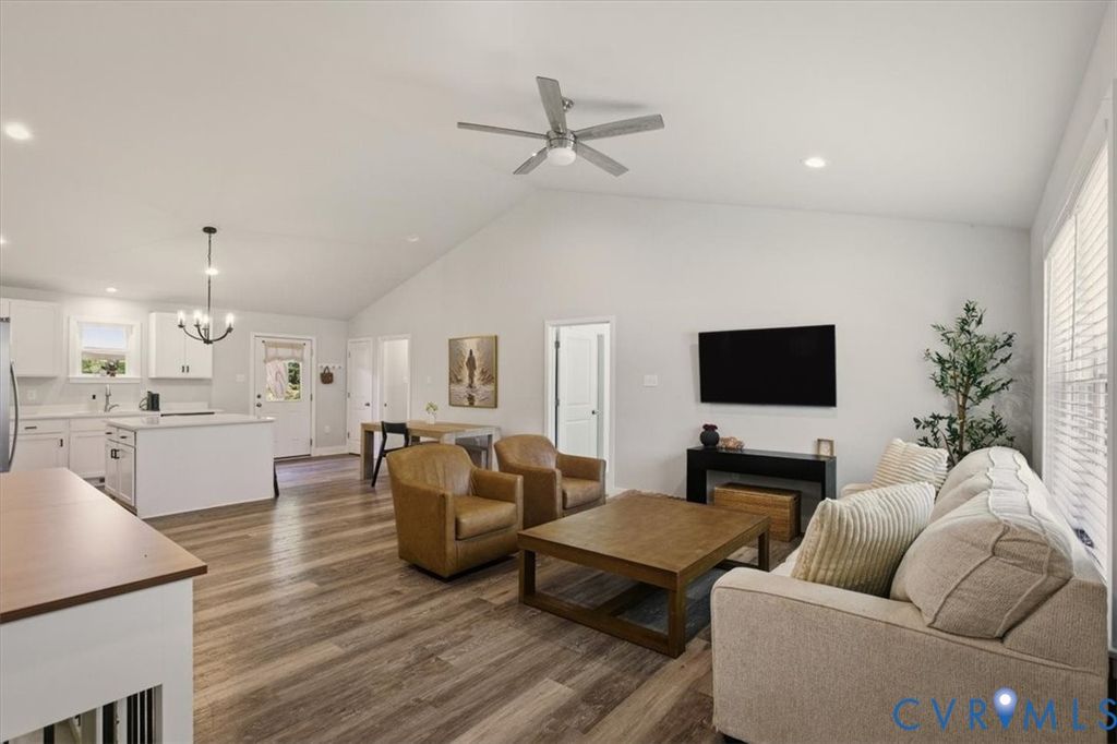 Welcome to your dream home, a stunning residence built in 2023 that beautifully combines modern design and comfort! This property features vinyl siding and vinyl windows, ensuring both durability and low maintenance. Step inside to discover LVP floors that flow throughout the open concept layout. The large family room seamlessly connects to the spacious eat-in kitchen, creating an inviting space for family gatherings and entertaining. With vaulted ceilings and recessed lights, this area is bright and airy, perfect for both relaxation and socializing. The large kitchen is a chef's delight, featuring elegant quartz countertops, a generous island for meal prep, and stainless steel appliances that elevate the space. Whether you're hosting dinner parties or enjoying casual family meals, this kitchen is designed for functionality and style. Retreat to the huge primary bedroom, complete with a large walk-in closet and a beautiful en-suite bath, providing a private oasis for relaxation. The home offers 3 bedrooms and 2 full baths, with updated bathrooms that blend contemporary finishes with comfort. Step outside to the large rear porch that overlooks a fenced-in rear yard, perfect for children and pets to play freely. This outdoor space is ideal for summer barbecues, gardening, or simply enjoying the peaceful surroundings. Additional features include a utility/laundry room equipped with a mop sink and extra storage for convenience, as well as a double-width driveway providing ample parking for guests. The large full country front porch invites you to relax and enjoy your morning coffee or the evening breeze. With a 30-year dimensional shingled roof, this home is built to last and requires minimal upkeep. Don't miss your chance to own this exceptional property that offers modern living in a serene setting. Schedule your showing today and experience all the charm and elegance this home has to offer!