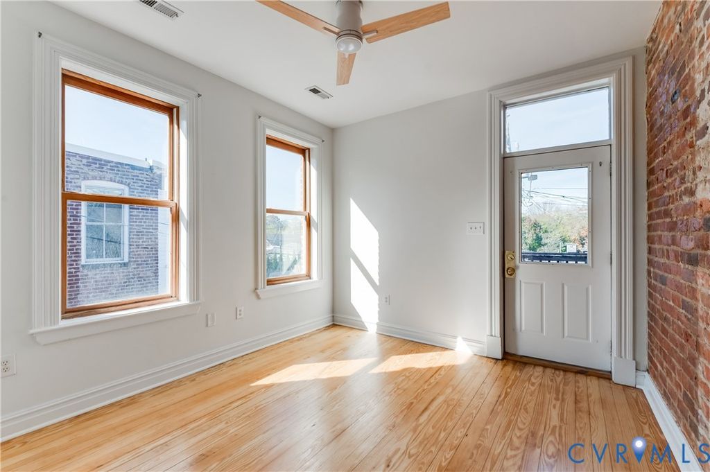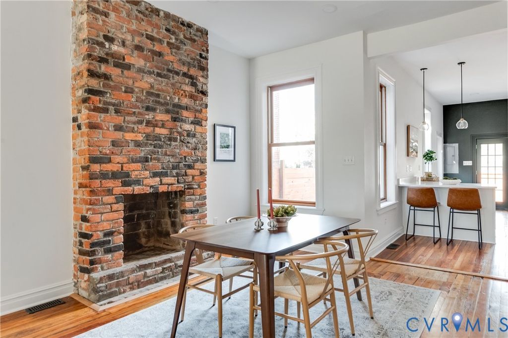 Nestled directly across from Chimborazo Park, this stunning home combines historic charm with modern living and captures the essence of Richmond living at its finest. Step inside to discover refinished heart pine floors, exposed brick walls, and soaring ceilings that celebrate the home's 19th-century roots, now paired with a light, airy aesthetic that feels refreshingly current. The welcoming living room, anchored by a classic brick fireplace and Jefferson windows, offers breathtaking views of the park. The open floor plan flows effortlessly into a charming dining area and a fully renovated kitchen with sleek white cabinetry, quartz countertops that extend as a seamless backsplash, open wood shelving, and brand-new stainless steel appliances. The layout invites conversation and connection"”perfect for easy mornings, intimate dinners, or evenings lingering over wine with friends. Upstairs, the spacious primary suite is a true retreat, featuring exposed brick, park views, and a spa-like ensuite adorned with rich navy tile and designer fixtures. Two additional bedrooms and a beautifully updated full bath provide comfort and flexibility for guests, family, or a home office. Outdoors, enjoy spaces designed to slow down and savor city life"”a private fenced courtyard ideal for entertaining, and a second-level balcony perfect for morning coffee or evening sunsets. With a new second-floor HVAC system, this home offers peace of mind to match its timeless appeal. Set in one of Church Hill's most picturesque locations, 222 N 32nd Street places you just steps from The Hill Café, Riverbend Roastery, and many of Richmond's favorite local spots. Whether it's morning walks through the park, weekend picnics, or spontaneous dinners nearby, this home invites you to live, relax, and connect in one of the city's most cherished neighborhoods. Don't miss your chance to own this historic beauty"”schedule your private showing today.