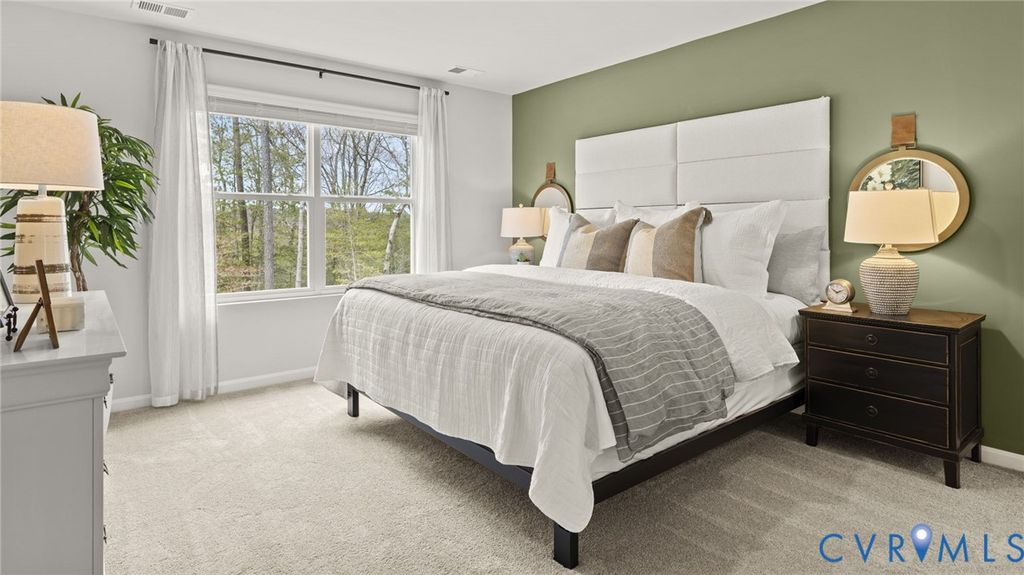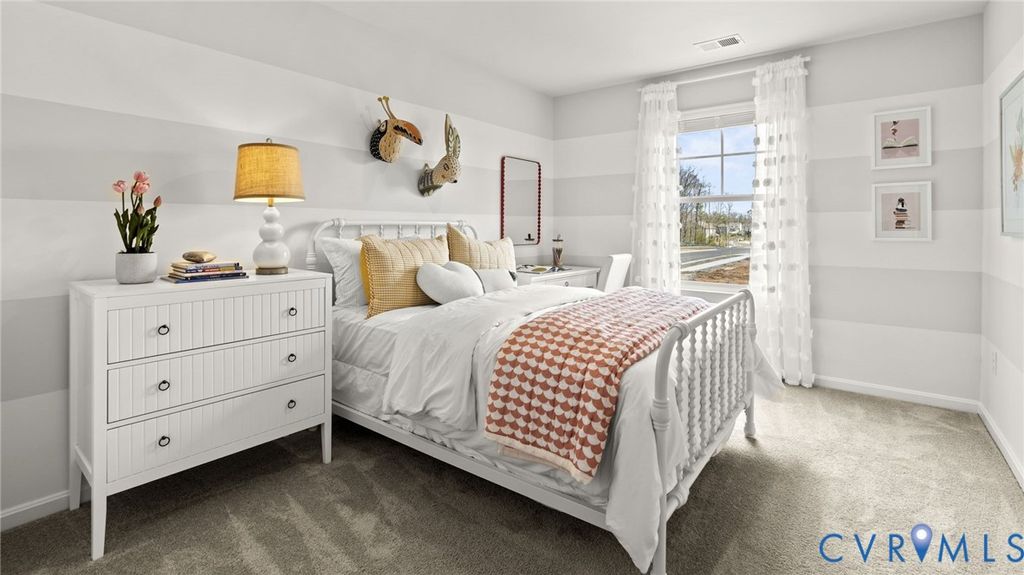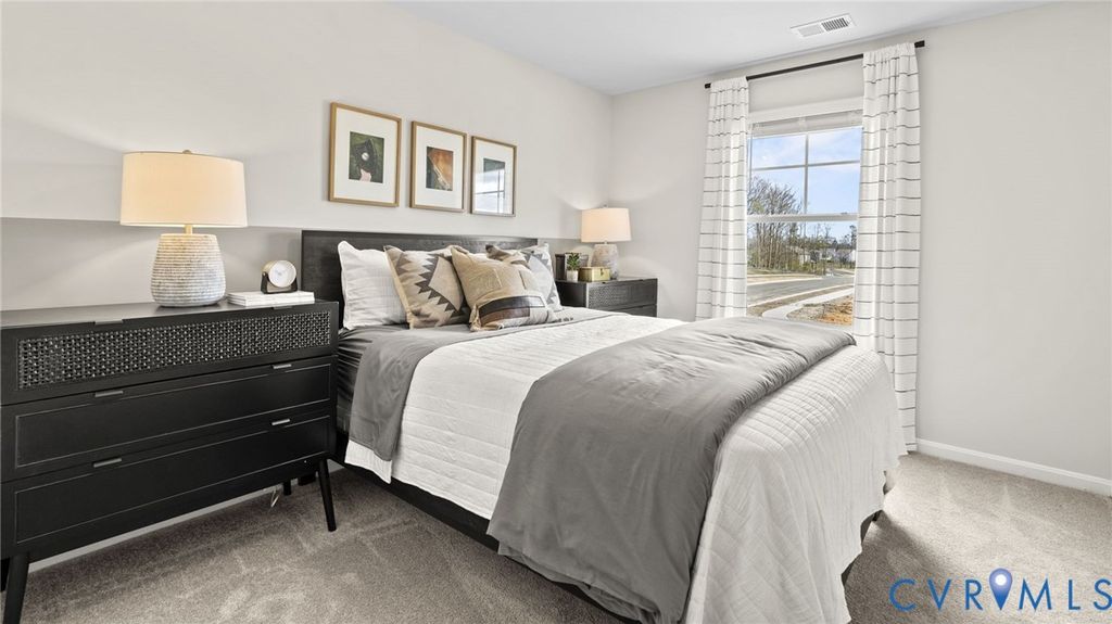 Welcome to Chappell Creek in Prince George, VA! This established community offers spacious homesites, open floorplans, and a family-friendly atmosphere just minutes from Fort Gregg-Adams, Petersburg, and Richmond. Welcome to The Pine, a stunning 1,953 sq ft open-concept home that perfectly blends comfort and functionality. This beautifully designed home features four spacious bedrooms, two and a half bathrooms, and a two-car garage, offering ample space for your family to grow and thrive. As you enter, you'll be greeted by a welcoming foyer with a convenient powder room and coat closet. The open floor plan allows for seamless flow between the living room, casual dining area, and kitchen, creating the ideal space for family gatherings and entertaining. The spacious kitchen is a highlight, with a large island offering plenty of seating, an impressive corner pantry, and stainless steel appliances. It overlooks the living and dining areas, and a sliding glass door provides easy access to the backyard. Upstairs, the owner's suite offers a private bath with a double bowl vanity and two oversized walk-in closets, creating a luxurious retreat. The three additional bedrooms are generously sized, providing ample privacy, and share access to the second full bathroom. The laundry room is conveniently located on the second floor, along with an extra hallway closet that could serve as additional storage or a linen closet. The Pine offers the perfect blend of spacious living, modern design, and practical features, making it the ideal choice for families seeking comfort and functionality in a home.