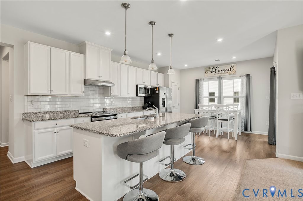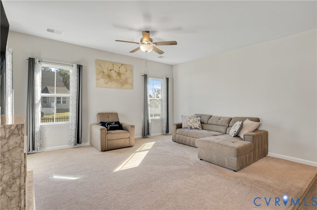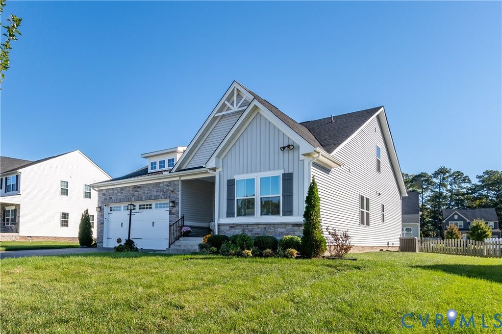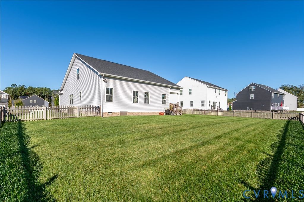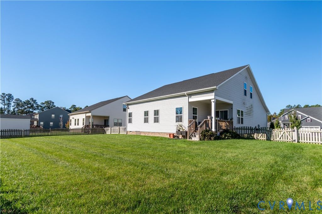 Welcome to this stunning like-new home in the highly desirable Harvie Point community. Built in 2021, this modern 2-story home blends contemporary design with functional living spaces and high-quality finishes throughout.The open-concept floor plan features a spacious living area with abundant natural light, 9+ ft ceilings, and recessed lighting. The gourmet kitchen boasts granite countertops, a large island, stainless steel appliances, and an eat-in dining area that overlooks the backyard. Perfect for both entertaining and everyday living. The first-floor primary suite offers a private retreat with a full bath, double vanity, and walk-in closet. An additional bedroom and full bath on the main level provide great flexibility for guests or multi-generational living. Upstairs, enjoy a spacious loft, third bedroom, and full bath "” ideal for a home office, playroom, or guest suite. Exterior highlights include a covered front porch, deck, attached two-car garage, and paved driveway. The lot features a fenced rear yard"”perfect for outdoor enjoyment. Energy-efficient features include 2-zone HVAC, Energy Star appliances, electric heat and water heater, and public water/sewer. Conveniently located near schools, shopping, dining, and major routes, this home offers the perfect combination of comfort, convenience, and style. Move right in and make this beautifully maintained home yours today!