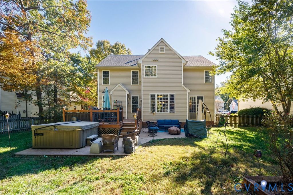 Welcome home to this spectacular brick & vinyl sided Transitional on a manicured cul-de-sac lot. The floor plan is very desirable as it affords plenty living space for entertaining with an open family room to kitchen as well as formal living room to formal dining room. The bedrooms are spacious and the primary bedroom features a primary bath with dual vanity sinks, jetted tub and fiberglass shower, there's an entry to the walk-up attic on 3rd floor from primary bedroom and second bedroom for lots of storage. Upgrades are as follows, newer LVP flooring on 1st floor, newer engineered flooring on the 2nd floor, kitchen w/granite and gas cooking along with bright, sunny breakfast area, a few freshly painted rooms, heating system replaced within last 5 years, roof replaced withi the last 4 years, hot water heater replaced approximately 3 years ago, there is a deck, hot tub and detached shed onsite and sellers are offering a Cinch-HMS warranty at settlement! Reminder of the many amenities in Rivers Bend: Clubhouse, pool, kiddie pool, tennis court, playground, basketball, etc.!