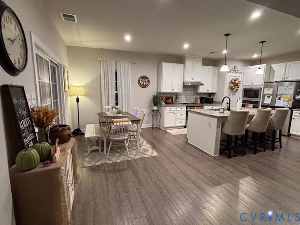Why wait to build when this stunning, move-in-ready home is waiting for you? Thoughtfully designed with attention to every detail, this beautiful residence offers an open floor plan and spacious living throughout. Featuring 4 generous bedrooms, the primary suite is a true retreat with its own luxurious ensuite bath"”complete with a tiled glass walk-in shower, double vanity, and two walk-in closets. The additional bedrooms are roomy, each with ample closet space and ceiling fans for year-round comfort. The living/family room invites relaxation with a cozy gas fireplace, enhanced by two extra windows for abundant natural light and a stylish shiplap accent wall. The chef-inspired kitchen boasts granite countertops, double ovens, a center island with pendant lighting, and GE Profile appliances"”perfect for entertaining or everyday cooking. Sit and relax with one of those meals in your spacious dining area! There is a nice front room with luxury plank flooring, that can be used for an office or a multi-purpose room with a barn door for privacy. Conveniently located upstairs, the laundry room adds ease to your daily routine. Throughout the home, you'll find faux wood blinds and sleek black matte fixtures for a modern touch. A Wi-Fi station is tucked away in the downstairs closet for seamless connectivity. Outside, enjoy a covered back deck with a ceiling fan, a patio with firepit, and beautifully landscaped stone-lined flower beds, all enclosed by a 6' white vinyl privacy fence. The property also includes paved parking, a 2-car garage with keyless side entry, and a 4-zone irrigation system to keep your yard looking its best. *** Professional Pics coming soon******
