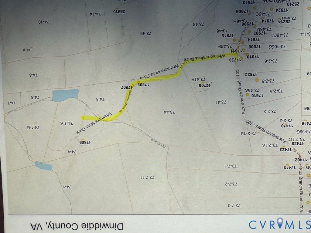 13.4 Acres in Dinwiddie County! Come take a look at this property! Private setting with pond views! No known ownership of pond. Access is a down private drive named Whitmore Moss Dr. off of Fox Branch Rd. Please see supplements for Plat.