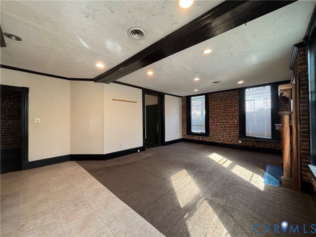 Available now. Museum District 2 bedroom apartment with 1700+ sqft. Two blocks to VMFA, walk to dozens of restaurants, shops, and Carytown. First floor of corner townhouse located at Hanover and Robinson. Original 1900's charm with decorative fireplaces & exposed brick, Friends-era vintage kitchen and bath. Washer/dryer in your unit (not basement). Large, bright south facing windows in every room. Large bedrooms that can accommodate king sized furniture. Front porch, fenced backyard has a paved patio shared with nice upstairs neighbor for secure bike and kayak storage. Street parking. No pets. Tenant pays all utilities, separate electric meters. $50 application fee includes credit and background check. An amazing find for your Museum district lifestyle. Call for appointment.