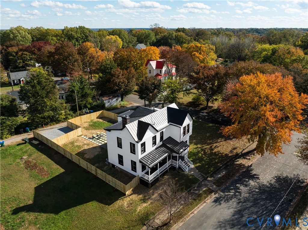 Perched on a quiet, tree-lined hilltop, this stately Victorian has been fully reimagined inside and out. Set in the heart of the city yet surrounded by iconic Richmond landmarks: Maymont Park and Gardens, Hollywood & Riverview Cemeteries, and the James River, this 4-bedroom, 2.5-bath home offers a rare blend of privacy, charm, and walkable urban living. Originally built in 1900, the home underwent a meticulous renovation celebrating its architectural character while delivering modern living. Step from the covered front porch into a welcoming foyer with long views, framed by original arched passageways, soaring ceilings, and refinished white oak floors. To the right, a generous office/den features a decorative fireplace and connects to the dining room through elegant French doors. To the left, the expansive living room is bathed in natural light and anchored by a gas fireplace flanked by custom built-ins and a cozy window seat. The rear kitchen boasts stainless steel GE appliances, white oak cabinetry, and striking blue-flecked granite countertops; a standout design moment in this classic home. A powder room, laundry closet, and mudroom offer practical convenience. Upstairs, the tranquil primary suite feels like a retreat among the treetops. The luxurious ensuite bath impresses with a large walk-in shower with bench seating, fluted tile, marble mosaic flooring, and dual vanity. Three additional sun-filled bedrooms share a cozy hall bath and linen closet. Outside, the large backyard features a tiled patio and a new wood privacy fence: perfect for gatherings or quiet afternoons. A gated rear entry provides access to two off-street parking spaces. Brand-new board-and-batten siding with contrasting black windows and downspouts complete the sophisticated exterior transformation. Homes of this size and caliber are rare in Maymont; especially just steps from the park entrance, North Bank Trail, and beloved Texas Beach. Discover one of Richmond's best-kept secrets and a home that truly stands apart.