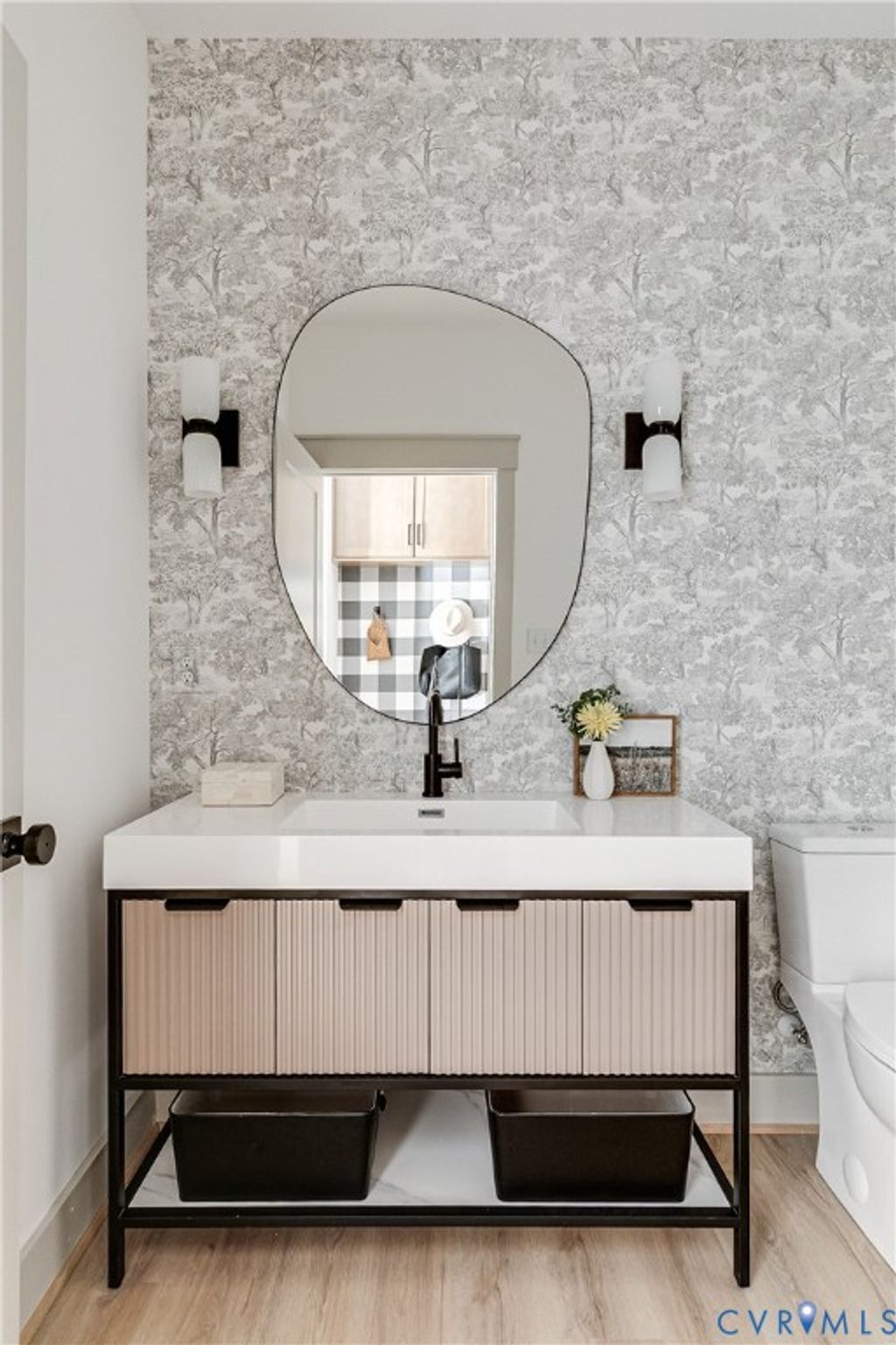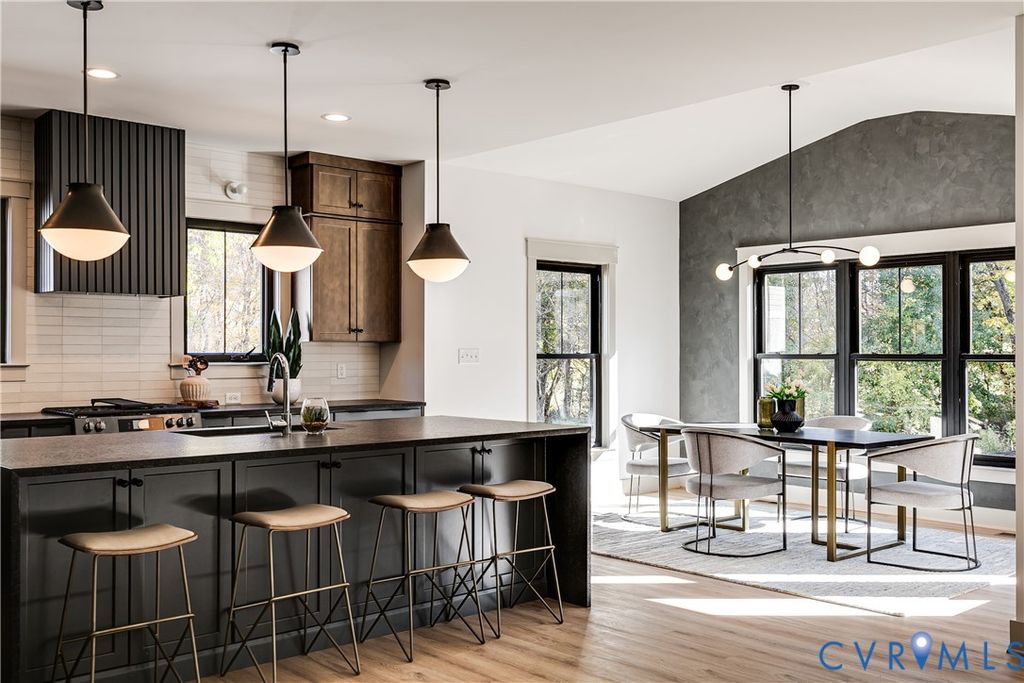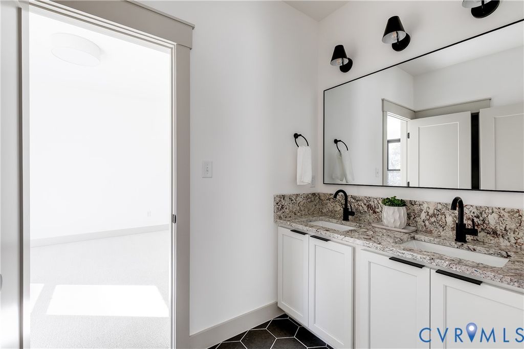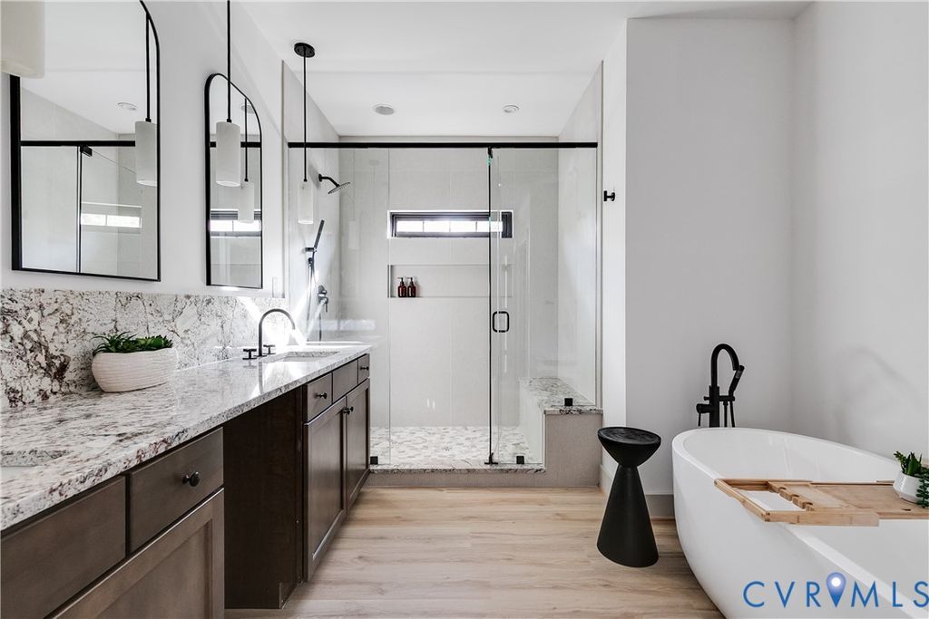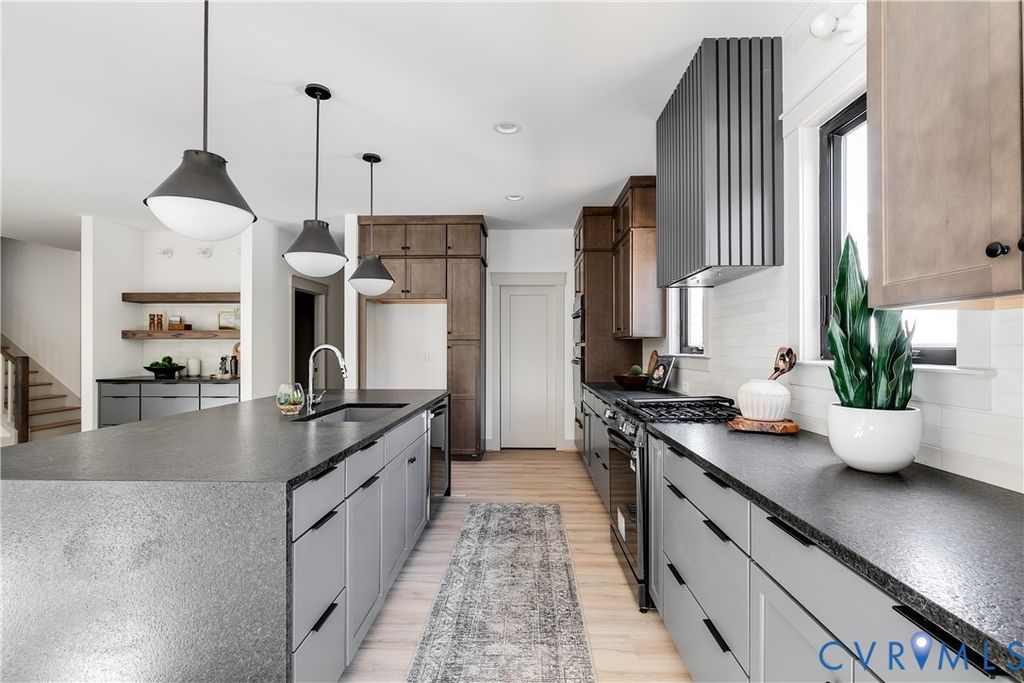 Modern design meets timeless warmth in this transitional farmhouse masterpiece"”crafted with designer precision and positioned on nearly half an acre in one of Manakin-Sabot's most convenient and private enclaves just off Hockett Road. Minutes from Short Pump, GreenGate, and Kinloch Country Club, this premium location offers the rare combination of serenity, accessibility, and no HOA"”giving you the freedom to add a pool or personalize your property as you wish. The exterior's dark charcoal monochrome palette"”black windows, stained-wood front and garage doors, and soft beige brick"”creates a look as refined and timeless as a charcoal suit. Warm natural textures, a stained porch ceiling, and detailed craftsmanship balance the bold palette with inviting character. Inside, every element has been curated by a California-based luxury designer featured on HGTV, blending natural materials with dramatic tone. The first floor centers on a spacious living room with a fireplace finished in Roman clay, built-ins, and floating shelves. The chef's kitchen features a massive waterfall island in leathered black granite, custom cabinetry with an aged-oak finish, a custom hood, gas range, wall oven with air-fryer function, and a dry bar with floating shelves and under-cabinet lighting. A light-filled dining area opens to the covered screened porch, while a first-floor suite doubles as a guest room or office with a private full bath. Upstairs, the primary suite impresses with a beamed ceiling, oversized walk-in closet, and a spa-level bath featuring a freestanding tub, frameless glass shower, and dual vanity with a central seated makeup area topped in granite and lit by stone pendant lighting. Three additional bedrooms include a private suite and Jack-and-Jill bath, plus a loft and connected pass-through laundry room. The third floor offers a 500+ sq ft bonus room with half bath and walk-in attic. Every finish was intentionally selected"”proof that this home is far more than a typical new build.