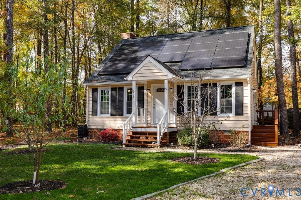 With its inviting curb appeal and serene wooded backdrop, this classic cape-style home offers a sense of peace and privacy just minutes from city conveniences. Inside, natural materials and warm wood tones create a space that feels both rustic and refined. The open living and dining area showcases exposed beams, rich trimwork, and a beautiful brick fireplace that anchors the space. Vaulted ceilings and skylights fill the interior with natural light, while the open loft above adds architectural interest and versatility. The kitchen combines functionality with timeless appeal, featuring granite countertops, stainless steel appliances, and classic wood cabinetry. The first-floor bedroom and adjacent full bath offer easy main-level living, while upstairs you'll find a spacious second bedroom, full bath, and an open loft"”an ideal flex space for a home office, reading nook, or creative retreat. Step outside to enjoy a private backyard surrounded by mature trees"”perfect for relaxing on the back deck, gathering around the fire pit, or tending to your garden. Two detached sheds provide convenient storage for tools and outdoor gear. Thoughtfully upgraded for energy efficiency, this home includes solar panels, vinyl windows, a newer roof, and a Bosch heat pump"”offering both sustainability and peace of mind for years to come. If you're seeking a home that balances comfort, character, and efficiency, 5612 Southern Pine Drive is one you won't want to miss.