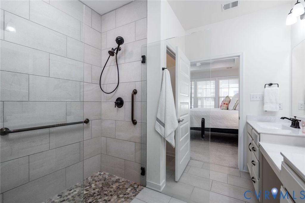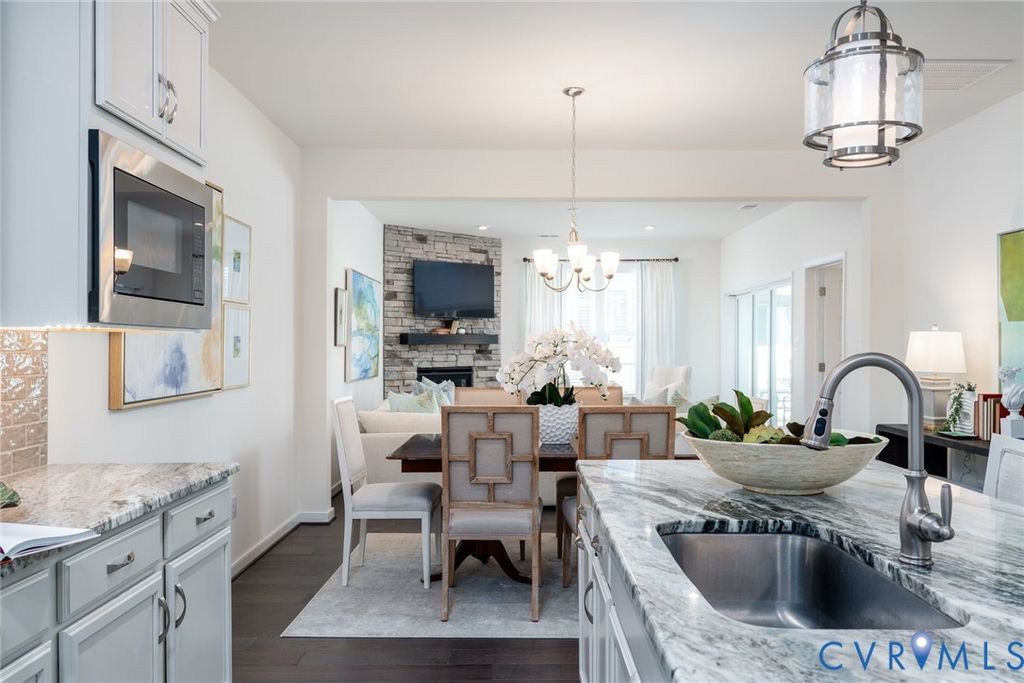MOVE IN READY- MOSAIC AT WEST CREEK artfully combines resort-inspired, low-maintenance living with the comforts and amenities of your forever home. Enjoy the active adult community (55+) with a state-of-the-art clubhouse, including a chef's kitchen for cooking demonstrations, indoor/outdoor fireplaces, pickleball, pool, hot tub, fitness center, walking trails, dog park, and more. Welcome to a perfectly designed home with features to assist us as we age (grab bars, roll-in shower, wide doorways). Soaring 9+ ceilings and natural light brighten every room. The chef's kitchen is spacious, with a large granite island, bar-top seating, a tile backsplash, and NEW stainless steel appliances (refrigerator, microwave, disposal, gas range, and range hood). Entertaining in the great room will impress all with the stacked stone wall, flat-screen TV, gas fireplace, and a multi-sliding glass door opening onto the covered, screened-in porch, which leads to your private patio and fenced backyard. The primary suite, a 2nd bedroom, a full bath, and a laundry room also ease first-floor living. The second floor includes a family room, a third bedroom, a full bath, and a walk-in floored attic.