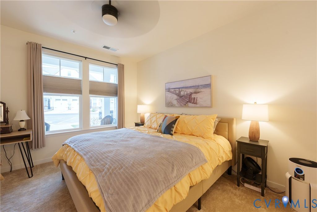 The Hayes 1 Designer Home model boasts a large family room, ideal for entertaining! Continuing on through the family room, you'll find the dining area and kitchen. The kitchen features a large center island along with a pantry for storage. Just off the kitchen is the Primary Suite with double closets and private bath with shower. The laundry closet is centrally located, just off the main living area. Some units in the community are still under construction, making this a great opportunity to secure a move-in ready home in a rapidly growing development. This particular unit has been used only a handful of times since it was purchased in 2024, keeping it in exceptional, like-new condition. The Pointe at Twin Hickory is a brand-new condo community within the highly sought-after Twin Hickory neighborhood, located in the heart of Short Pump. Residents enjoy a variety of amenities including tennis courts, a pool, recreational areas, and assigned parking spaces"”offering comfort, convenience, and a vibrant lifestyle all in one place.