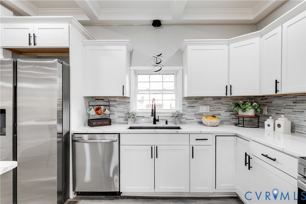 Welcome to this beautifully renovated two-story home offering modern comfort, charming details, and timeless appeal. Featuring 3 spacious bedrooms, 2 elegantly designed bathrooms, and thoughtful upgrades throughout, this home blends contemporary living with classic style. Step inside to a welcoming foyer that opens into a stunning living room adorned with custom wall paneling, built-in cabinetry, and exquisite coffered ceilings. The open-concept layout flows seamlessly into the chef-inspired kitchen, complete with shaker-style cabinets, granite countertops, stainless steel appliances, and eye-catching designer light fixtures perfect for everyday living and entertaining. Upstairs, you'll find three generously sized bedrooms and a beautifully updated full bathroom. The rear bedroom features a private balcony overlooking the fenced backyard, ideal for morning coffee or evening relaxation. Both bathrooms showcase contemporary ceramic tilework, offering a sleek and elegant finish. The finished basement provides a versatile bonus space with its own independent entrance it is perfect for a recreation room, home gym, office, or guest area. Step outside to enjoy the spacious deck, ideal for grilling, entertaining, or unwinding. The fully fenced backyard offers ample room for pets, gardening, and over all: privacy. Convenient off-street parking is available via the alley behind the home. Located in one of the city's historic, walkable neighborhoods, this home places you moments from local shops, restaurants, parks, and is just minutes from downtown"”offering the ultimate blend of charm, convenience, and city living. Don't miss your chance to own this exceptional property!