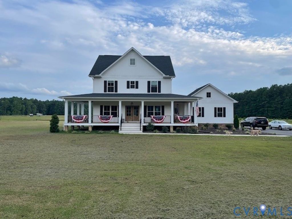 Hanover LIKE NEW CONSTRUCTION only better because it's move-in ready! Modern Farmhouse only 3.5 years old! Three and half acres w/ mature landscaping, a wraparound porch and peaceful country views. This modern farmhouse opens to a grand Foyer with beautiful double doors. Architectural details appear throughout the home, including 9' ceilings, wide baseboard trim, shadow boxing, chair rail, transom, spectacular mudroom built-ins, wide planked LVT flooring, plus overhead lighting & gorgeous windows in every room. Open and spacious w/ clean upscale finishes. Flex room can be office, formal living room, etc. Large formal dining room w/ generous windows. Family room offers recessed lighting, gas fireplace & sweeping country views. Kitchen features stainless steel appliances, gas cooking, 78" soft-close cabinetry, quartz countertops and decorative tile backsplash. The island is a showpiece, featuring quartz countertop, seating, storage & electrical outlets. The Morning Room brings lots of natural light & panoramic property views. Butler's Pantry has quartz counters, wet sink, refrigerator & large double-door pantry. The Mudroom is a standout w/ its private entrance, amazing floor-to-ceiling built-ins, cubbies & bench. Upstairs, Primary Suite offers beautiful views, walk-in closet & bath w/ double vanity, separate tub/shower. Three additional bedrooms generous sized closets. Hall bath w/ double vanity & separate tub/shower serves the bedrooms. Full laundry room & two large linen closets complete the second floor. Exterior features include mature landscaping, maintenance-free vinyl siding & railings, gutters & downspouts, outdoor lighting, partial paved driveway, sidewalk & insulated crawlspace w/ vapor barrier. A rear deck provides outdoor entertaining space. Attached 2 car Garage w/ automatic door opener. All systems only 3.5 yrs old; 30-year roof, two heat pumps, electric water heater, conventional septic, buried propane tank and deep well! PROFESSIONAL PHOTOS TO COME!