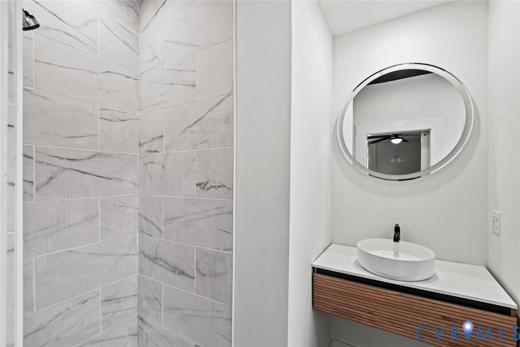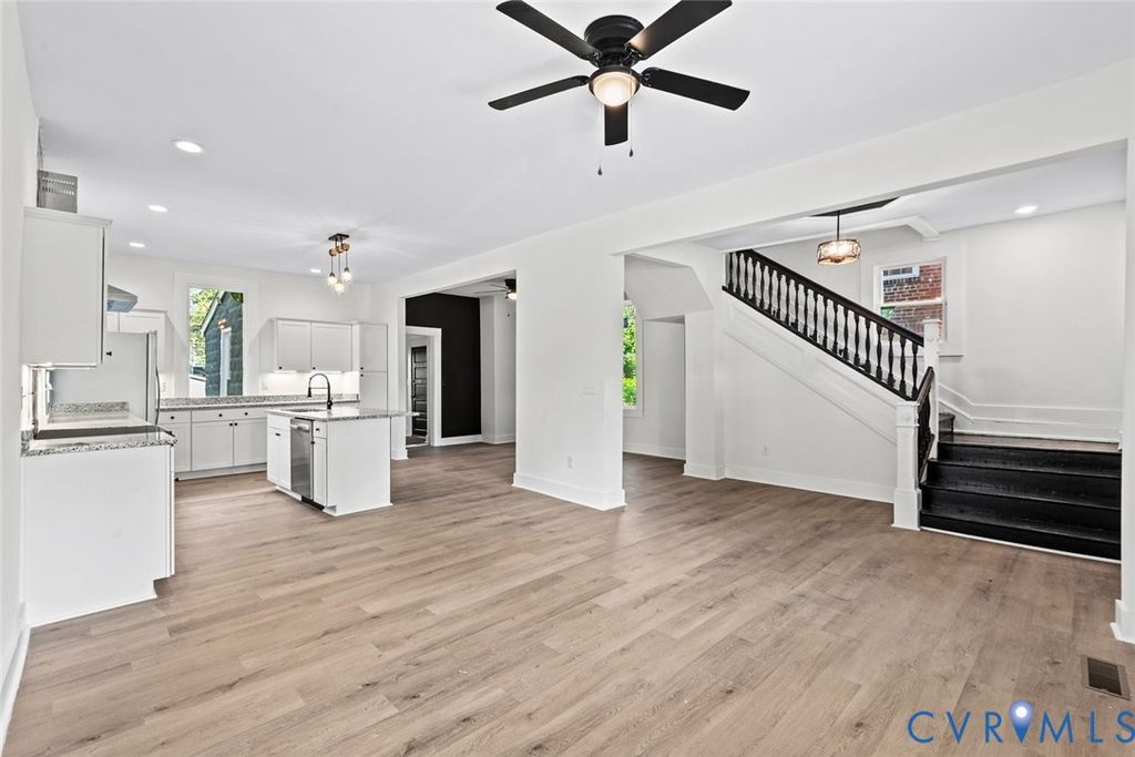 Welcome to 2814 4th Ave in Richmond Va this home features freshly painted dark-toned stucco and a vibrant front door that makes a striking first impression. A charming front porch invites you to relax outdoors, while the landscaped yard and privacy fence add both beauty and seclusion. Inside, a spacious living area with luxury vinyl plank flooring flows seamlessly into the gourmet-inspired kitchen. The kitchen boasts abundant soft-close cabinetry, stainless steel appliances, granite counters, a stylish tile backsplash, under-cabinet lighting, and a large island with seating, sink, and dishwasher "” perfect for entertaining. The interior showcases a bold, modern aesthetic with striking black-painted walls, doors, and stylish design accents throughout, creating a sleek, contemporary atmosphere while still offering plenty of opportunity to personalize. Toward the back, a large laundry area with mudroom and convenient half bath provides easy access to the outdoors. Upstairs, you'll find three bedrooms, including a primary suite with walk-in closet, tiled shower, soft-close vanity with LED mirror lighting, and ample space to relax. A second full bathroom upstairs features a tiled shower, bathtub with tiled surround, updated lighting, lighted mirror, and a chair-height elongated toilet, offering both style and functionality. The partly finished basement adds additional living or recreational space, ready to be customized to your needs. Major updates provide peace of mind and modern convenience, including all new electrical and plumbing, a new roof, new HVAC, new water heater, newly installed windows, and updated gutters. This home combines thoughtful updates, stylish design, and functional living spaces "” all in a prime location ready for you to move in and enjoy.