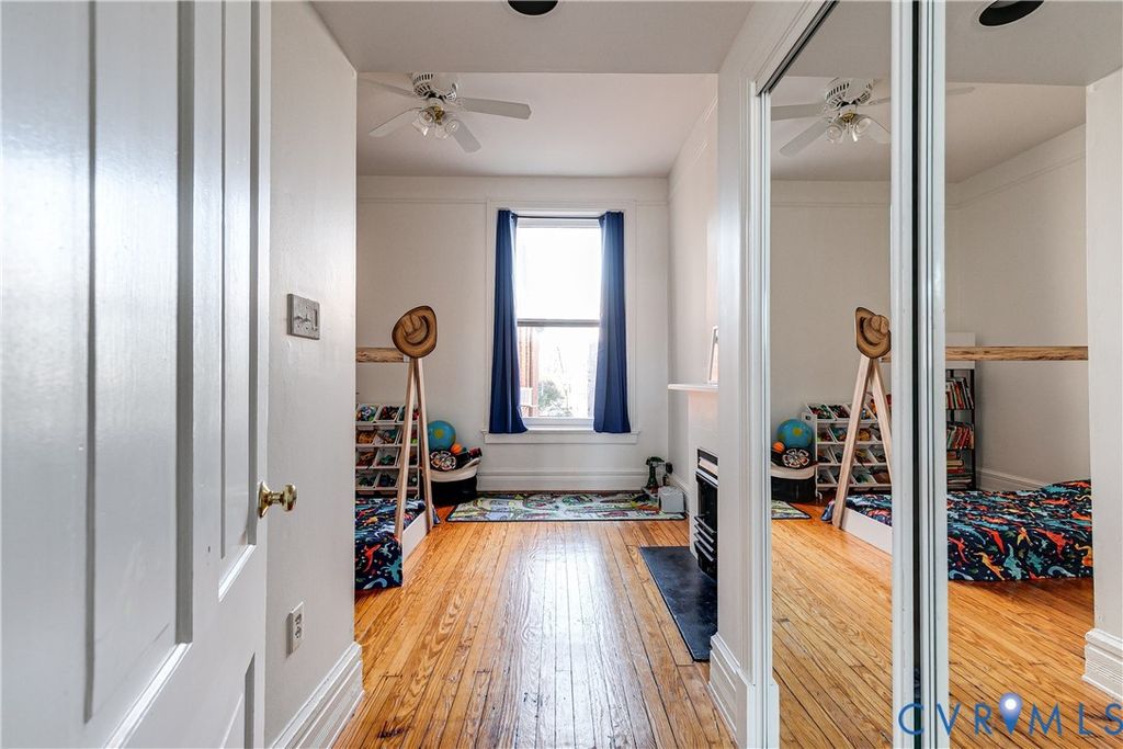 Welcome to this beautifully preserved Fan District condominium! Nearly 1,600 sq. ft. of historic charm paired with an incredibly functional layout. Perfectly positioned on West Franklin Street, you're just moments from VCU, award-winning restaurants, cafés, and all the character the neighborhood is known for. Step inside to find original 1910 hardwood floors, soaring ceilings, and four stunning decorative fireplaces that anchor each living space. A two-story foyer leads into a light-filled family room with an oversized bay window overlooking Franklin Street. The updated kitchen features charming cabinetry, quartz countertops, and new appliances. The main level offers a spacious bedroom with double closets and an attached full bath. Upstairs, a second large living area with another bay window creates a flexible retreat! Use it as a second family room, office, or convert the entire level into a full primary suite. A second bedroom with ensuite bath and fireplace completes the upper floor. A rare offering of space, character, and location in the heart of the Fan.