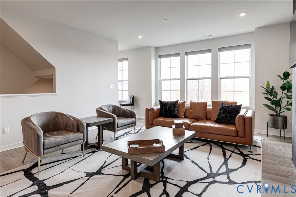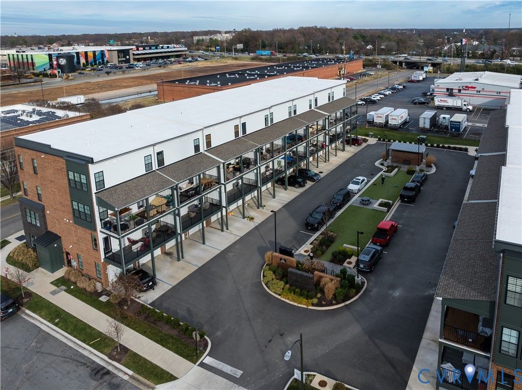 Welcome to 1473 Overbrook Road, a premier upper-level condo in the desirable Outpost at Brewers Row community, ideally situated in the RVA Nexus, where 3 iconic Richmond neighborhoods converge: the Diamond District, Scott's Addition, and The Fan. From the expansive covered deck, enjoy views of live music on the Hardywood stage and walk to the new Flying Squirrels stadium, future VCU Athletic Village, The Park (Richmond's longest bar), SCOR, and the renowned dining, breweries, and culture of Scott's Addition and The Fan. Built in 2022 and owned by a single owner, this 2,516 sq ft home features a main-level open-concept layout with 9-foot ceilings, LVP flooring, and a designer kitchen with quartz countertops, a large island with seating, stainless steel appliances including an upgraded refrigerator, and a generous pantry. The spacious living room area is anchored by a sleek and modern electric fireplace. A rare builder upgrade provides a main-level fourth bedroom with full bath, offering exceptional flexibility for guests. The covered deck elevates outdoor living with a gas fireplace fueled by a refillable propane tank. UV-blocking scrim type shades provide privacy while preserving natural light. Upstairs, the primary suite offers two walk-in closets and a spa-inspired bath with an upgraded sliding door and tiled walk-in shower. The second level also features two additional bedrooms, a hall bath, and convenient second-floor laundry. Upgraded HVAC insulation enhances energy efficiency and helps keep utility costs low, while smart home features include a Ring doorbell, Schlage smart lock, and MyQ garage opener"”all conveniently controlled from your phone. Additional highlights include an attached garage, dedicated covered driveway parking, and guest parking by permit. With the surrounding area rapidly developing, this condo offers modern luxury in one of Richmond's most dynamic urban settings.