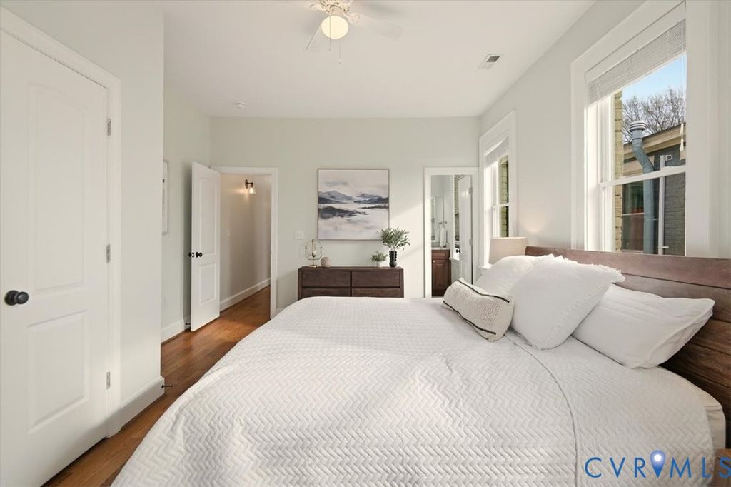 Welcome to the heart of Church Hill! This impeccably renovated 3-bedroom, 2.5-bath rowhome delivers the rarest Church Hill luxury: a detached 2-car brick garage with off-street parking in one of Richmond's most vibrant, walkable neighborhoods. Fully rebuilt to the studs in 2015 with all-new roof, windows, HVAC, plumbing, and electric, this light-filled home welcomes you with fresh interior paint throughout, gleaming 4-inch wide hardwood floors flowing across both levels, an open-concept main level anchored by a stunning custom slate entertainment center and built-in bookshelves in the living room, huge windows dressed in wide-slat plantation blinds, and a chef-worthy kitchen equipped with new Bosch appliances (2024 refrigerator, 2022 dishwasher), under-counter microwave, handsome leathered granite countertops, and gas cooking. Upstairs you'll find a spacious primary suite with excellent closet space and en-suite bath, two additional generous bedrooms, a full hall bath, and convenient second-floor laundry. Fresh exterior trim paint, brand-new 2025 fence and deck railing, and a private fenced patio complete this move-in-ready gem. Just steps from Libby Hill Park, Grisette, Alewife, Riverbend Coffee, Honey Baked Brie, Secret Squares Pizza, Hill Cafe, Cobra Burger, Chimbo, and everything Church Hill has to offer"”2,280 sq ft of turn-key perfection that won't be on the market long.