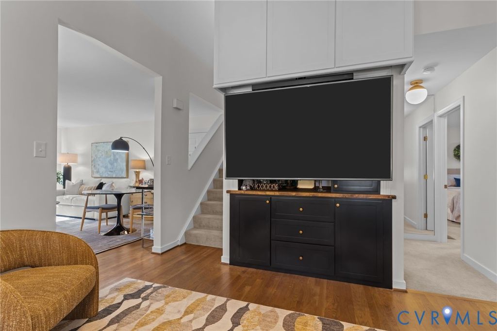 Step inside and immediately feel at home in this beautifully renovated end-unit townhouse, ideally located in the highly sought-after Godwin High School district and just minutes from everything Short Pump has to offer. With over 2,000 square feet of thoughtfully designed living space, this home delivers a warm, welcoming atmosphere paired with a dynamic floor plan built for both everyday comfort and effortless entertaining. The main-level primary suite offers the ease of first-floor living and a peaceful retreat at the end of the day. Throughout the main living areas, rich hardwood floors lead you through a layout that truly maximizes space and flow. The renovated kitchen serves as the heart of the home, featuring upgraded soft-close cabinetry, refined finishes, and seamless connection to the living and dining areas"”perfect for hosting and gathering. The family room is a true standout, designed for connection and relaxation, complete with a unique drop-down TV that lowers in front of a newly designed bar area"”ideal for game days, movie nights, or casual evenings with friends. Every space reflects the vision of a professional interior designer, where no detail was overlooked and each room feels intentional, comfortable, and inviting. Step outside to a fenced-in backyard and rear deck, extending your living space outdoors and creating the perfect setting for entertaining or unwinding. Additional highlights include a one-car attached garage, a newer roof for added peace of mind, and the added privacy and natural light of an end-unit location. From the cozy, welcoming vibe to the entertainer-friendly layout and unbeatable location, this home offers more than just a place to live"”it's an experience you'll want to call home.