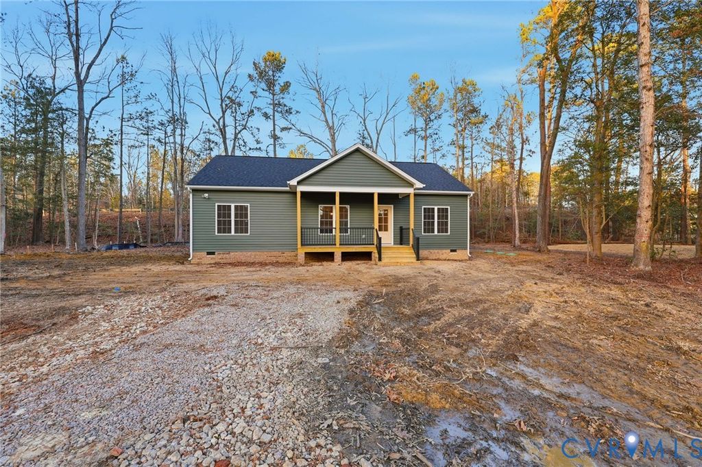 Welcome to this beautiful construction home offering 1,344 square feet of thoughtfully designed living space. Featuring 3 bedrooms and 2 full bathrooms, this home sits on 0.82-acre lot in Prince George County. LVP flooring throughout, covered front and back porch, 9-foot ceilings with vaults in the living/kitchen and primary bedroom. The heart of the home is the open concept living area featuring the stunning kitchen, complete with custom cabinetry and elegant granite countertops and marble backsplash. The primary bedroom has a spacious walk-in closet, master bathroom with double vanity sink and gorgeous floor-to-ceiling tiled shower that will soon have custom frameless glass doors installed. Ideally located, this property is just 5 minutes from the interstate and only 15 minutes from Colonial Heights, Petersburg, and Hopewell making commuting and access to shopping, dining, and entertainment quick and easy.