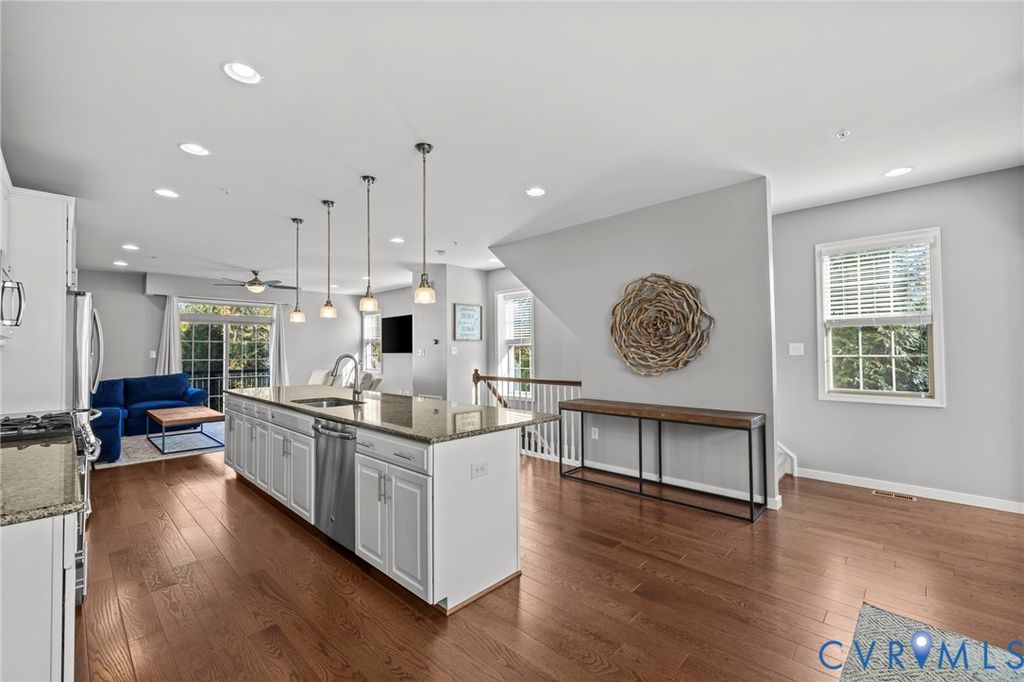 Stylish 4-Bedroom Townhome with Rooftop Terrace & 2-Car Garage! Welcome to this beautifully designed 4-bedroom, 3.5-bath townhome that perfectly blends comfort, style, and functionality. The entry-level offers a flexible bedroom or home office, complete with an en-suite full bath"”ideal for guests or remote work. The open-concept main level is made for modern living, featuring gleaming hardwood floors and a seamless flow from the family room to the dining area and kitchen. The kitchen boasts crisp white cabinetry, stainless steel appliances, and plenty of counter space"”perfect for both everyday meals and entertaining. A convenient half bath completes this level. Upstairs, the third floor features three spacious bedrooms, including a serene primary suite with a walk-in closet and a spa-inspired bath with a large ceramic-tile shower and double vanity. The guest bedrooms share a well-appointed full bath, and the laundry is conveniently located on this level. The crown jewel of this home is the top-level rooftop terrace"”a private retreat perfect for entertaining, relaxing, or enjoying your morning coffee with a view. With a 2-car garage, modern finishes, and a flexible floor plan, this home offers an exceptional lifestyle in a sought-after community.
