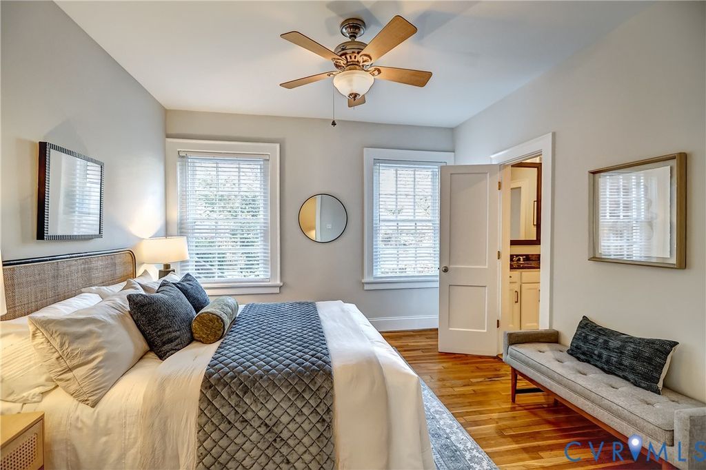 Welcome to your opportunity to live on iconic Monument Ave in the heart of the Fan District!! This charming condo offers the perfect blend of character and comfort, as well as incredible walkability. Situated on the first level at the rear of the building, this unit provides a quieter, more private setting. Enjoy outdoor living with a covered porch just off of the kitchen-perfect for morning coffee, a cafe table, or a cozy seating space. Inside, features two nicely sized bedrooms connected by a refreshed Jack and Jill bathroom. The open living area allows space for both relaxing and dining, creating a warm and functional layout. The kitchen has been updated with painted white cabinets, tile backsplash, new range and refrigerator and offers a pantry as well as abundant counter space. Additional features include 9 ft ceilings, hardwood flooring, interior freshly painted, newer stackable washer and dryer, secured storage in basement of the building, and a parking pass for the adjacent lot. All of this just steps from restaurants, shops, museums, and everything that the Fan is known for. Come see why this condo and location are truly special!!