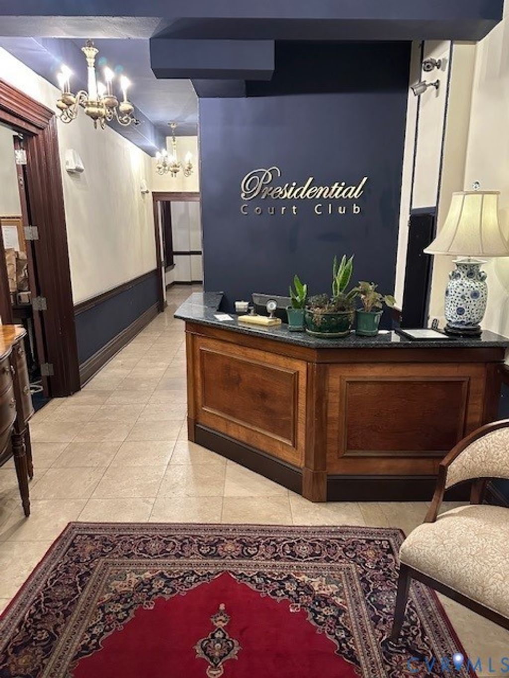 Welcome to this spacious 1876" penthouse condo located in the historic A,S, Smith House (circa 1870), This 2 bedroom 2,5 bath home offers a gracious front living room with hardwood floors and a 10'9" ceiling. The equipped kitchen has granite counters, breakfast bar, plus dining table space. The bright office has nice views of Franklin Street, The Jefferson Hotel, and glorious sunsets! too! The upper floor primary bedroom has hardwood flooring, and the private tiled bathroom has a jetted tub/shower. The 2nd bedroom is carpeted, with private tiled shower bath, This 27 unit luxury condo property with an Otis elevator was created approximately 15-18 years ago. Residents have use of common areas that include the library, exercise area, game room, and lovely gardens and patios. A designated off street parking spot is included. Rentals are allowed. Downtown walkable attractions include theaters, restaurants, the YMCA, Richmond Library, Virginia Commonwealth University , the State Capital, Brown's Island, and more! We hope you consider this as your next home!