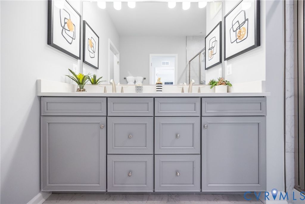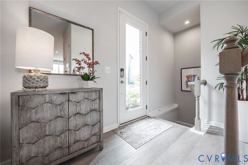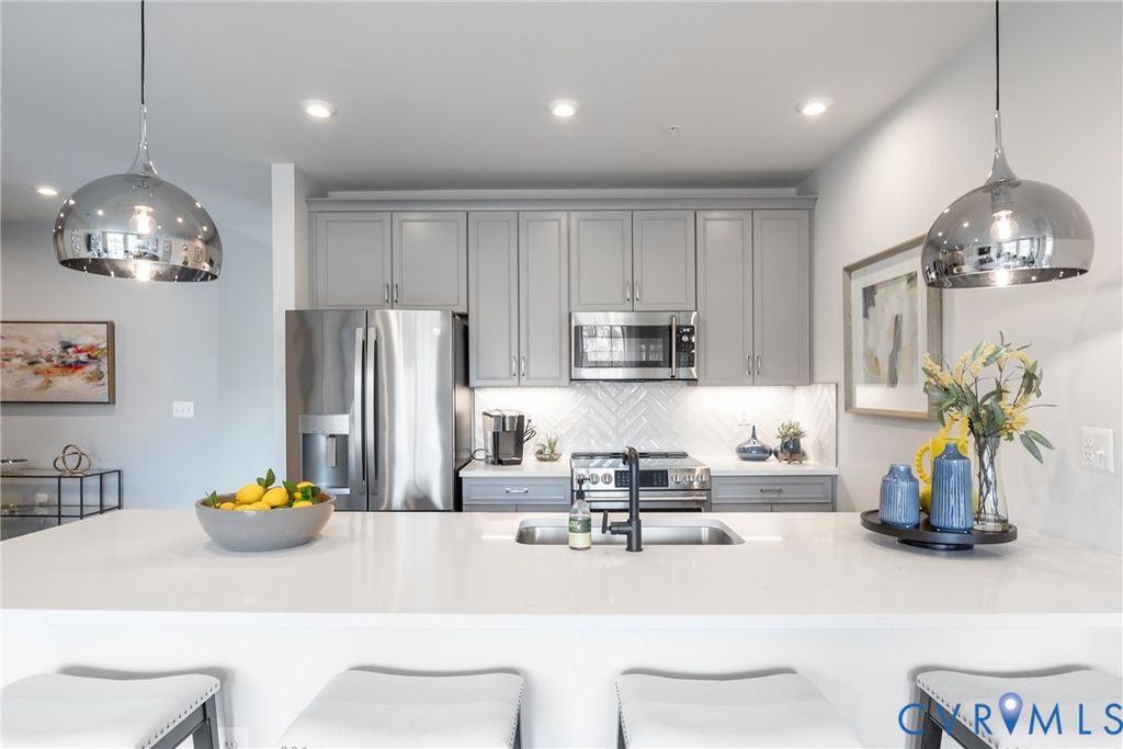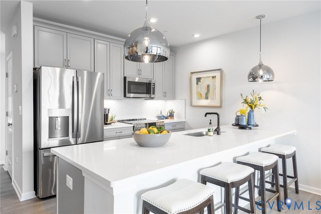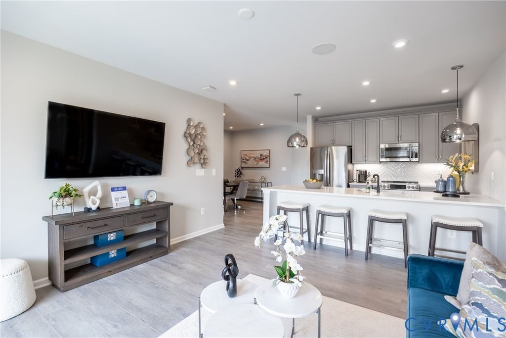 Welcome to Coalfield Station Ln, where premium location meets luxury low maintenance living! This home offers all the perks of new construction, without waiting months to move in. This specific unit was the model for the community, so you will enjoy top of the line finishes throughout. Step through the front door into the well lit foyer and continue on towards the dining area. To your left is the stunning kitchen, complete with stone countertops, herringbone style tiled backsplash, and luxury vinyl plank that runs seamlessly throughout the unit. Continue on to the living room, taking in the open concept floor plan under the 9ft ceilings. Along with the ample room for entertaining, the large windows opening to the balcony allow for plenty of natural light. From the living room, head towards the luxury primary bedroom suite. You'll love the size of the bedroom complete with a large walk-in closet and ensuite bathroom. The stunning finishes continue into the bathroom where you'll find tile floors, tile shower surround, and sizable double vanity. The condo offers another bedroom, full bathroom with soaking tub and tile tub surround. Heading downstairs you'll find the garage and another space that could be used as an ADDITIONAL bedroom, office, or flex space. Walk to American Family Fitness, Midlothian Mines Park, or enjoy a very short drive to all the shopping and dining Midlothian Tpke has to offer. Don't miss out on the chance to make this home yours today!
