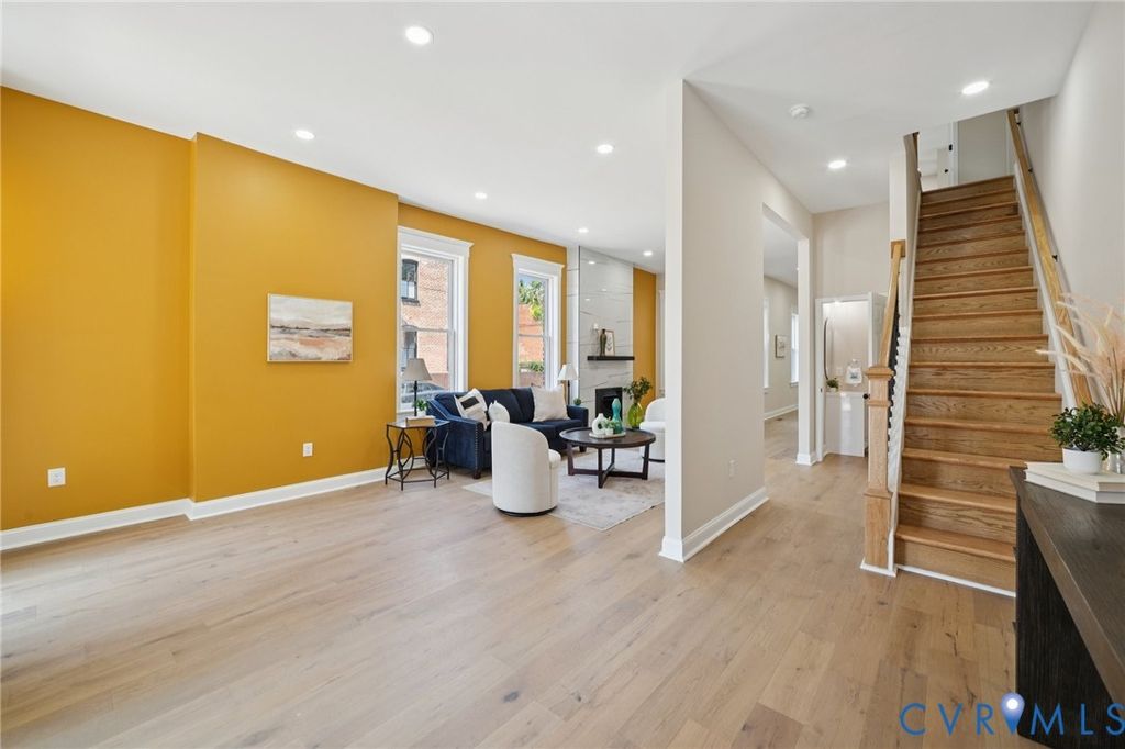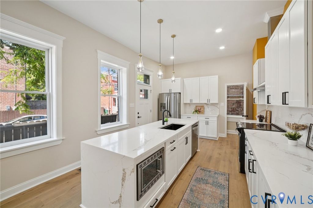 A Historic Home with a New Soul! A rare opportunity to own a fully restored 1910 single-family home in the heart of Richmond's vibrant Jackson Ward Historic District. This stunning 3-bedroom, 2.5-bath home blends classic architectural charm with high-end modern finishes throughout. The main level offers an open-concept layout with a show-stopping chef's kitchen featuring custom cabinetry, Calcatta quartz waterfall island, stainless steel appliances with range hood, and designer lighting. Upstairs, the luxurious primary suite includes a dual shower, standalone soaking tub, dual vanity, and his-and-her closets. Bedrooms 2 and 3 share a beautifully designed Jack & Jill bathroom. First-Floor laundry room and powder bathroom add convenience. Outdoor living includes a welcoming covered front porch and a private side deck---perfect for entertaining. While there is no backyard, the home is walkable to VCU, restaurants, galleries, shops and located on the bus line with quick access to downtown, highways, and many Annual Festivals! Bluetooth audio is integrated throughout the home, bringing modern convenience to historic elegance. This one-of-a-kind property offers the perfect blend of location, luxury, and legacy.