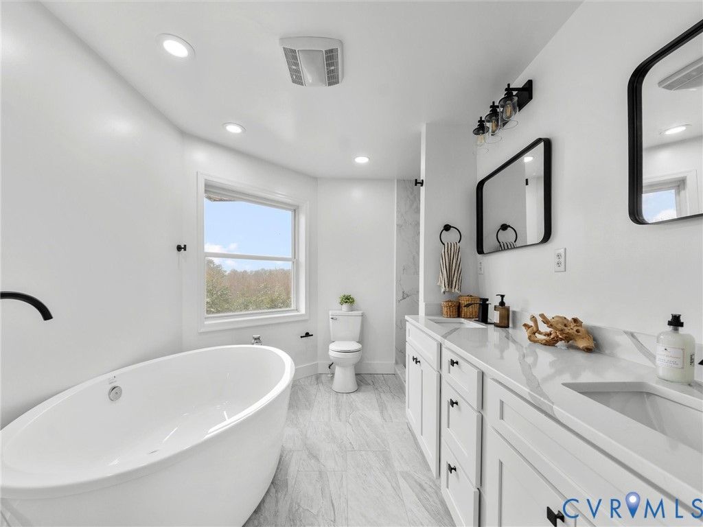 Welcome to a truly exceptional estate on 10 picturesque acres in Louisa, where timeless design meets expansive living. Built in 2002 and offering over 3900 sq ft of finished space, with 2505 sq ft + 1400 sq ft basement - this stately home is designed for grand living and effortless entertaining inside and out. A sweeping wraparound porch with brand-new composite decking sets the tone as you arrive, overlooking the private drive and surrounding acreage. Step inside to find a welcoming formal living room that flows seamlessly into a spacious dining area and onward to the heart of the home "” an impressive chef's kitchen featuring quartz countertops, abundant cabinetry, a center island, and a generous eat-in area. The kitchen opens directly into the expansive family room, anchored by a cozy fireplace and framed by French doors that lead to a spectacular multi-level composite deck with dual staircases and panoramic views of your private 10-acre retreat. The main level also includes a beautifully updated full bath and a versatile office space, perfect for working from home or future guest quarters. Upstairs, you'll find three spacious bedrooms and three full baths, including a luxurious owner's suite with ample closet space and serene views of the property. The home's basement provides an incredible extension of the living space, featuring two large recreation rooms ideal for a home theater, fitness studio, game room, or multi-generational living. Additional updates bring peace of mind and modern appeal, including a new roof, new windows, new HVAC system, new hot water heater, updated bathrooms, fresh interior paint, and more "” allowing you to move right in and enjoy. An attached oversized 2+ car garage offers room for vehicles, storage, or a workshop. Outside, the sprawling 10 acres provide endless possibilities "” from gardens and outdoor entertaining to a future pool, pasture, or equestrian space.