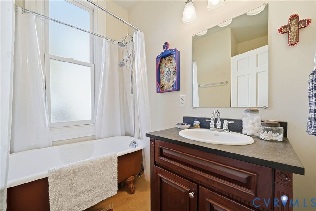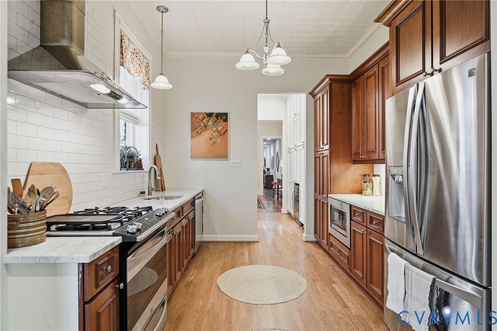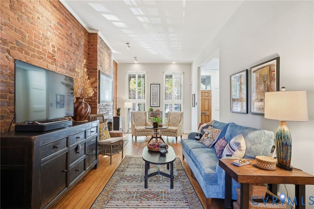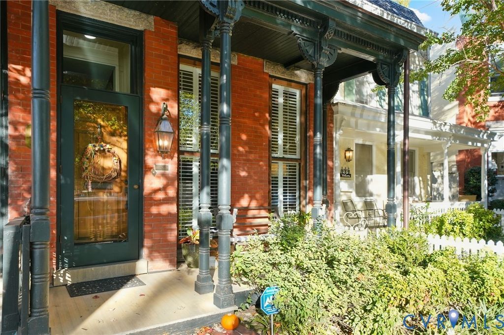 A rare opportunity to own an updated Victorian with off-street parking in the heart of the Fan District. Located on a quiet, tree-lined block directly across from the Warsaw Condominiums, this residence offers the convenience of private parking along with ample permitted street parking for residents and guests"”a true advantage in this vibrant urban setting. Inside, original architectural character meets thoughtful modern updates. Exposed brick walls and tall ceilings create a sense of openness throughout the double living room, while the adjacent formal dining room offers a dedicated space for gatherings. The eat-in kitchen is both functional and connected, offering generous cabinetry, a wine fridge, and direct access to the expansive brick terrace, ideal for entertaining or quiet outdoor living. Upstairs, the primary suite includes a spacious tile and marble bath featuring a double marble vanity, walk-in shower, and a dressing room with custom storage. Two additional well-sized bedrooms and a second renovated full bath provide flexibility for guests, family, or workspace. This home is ideally situated just blocks from the shops, dining, and energy of the Lower Fan and Main Street corridor, offering walkability to many of Richmond's most notable destinations while maintaining the charm and quiet of a residential street. A refined and comfortable residence in one of the city's most desirable neighborhoods"”this is Fan living at its best.