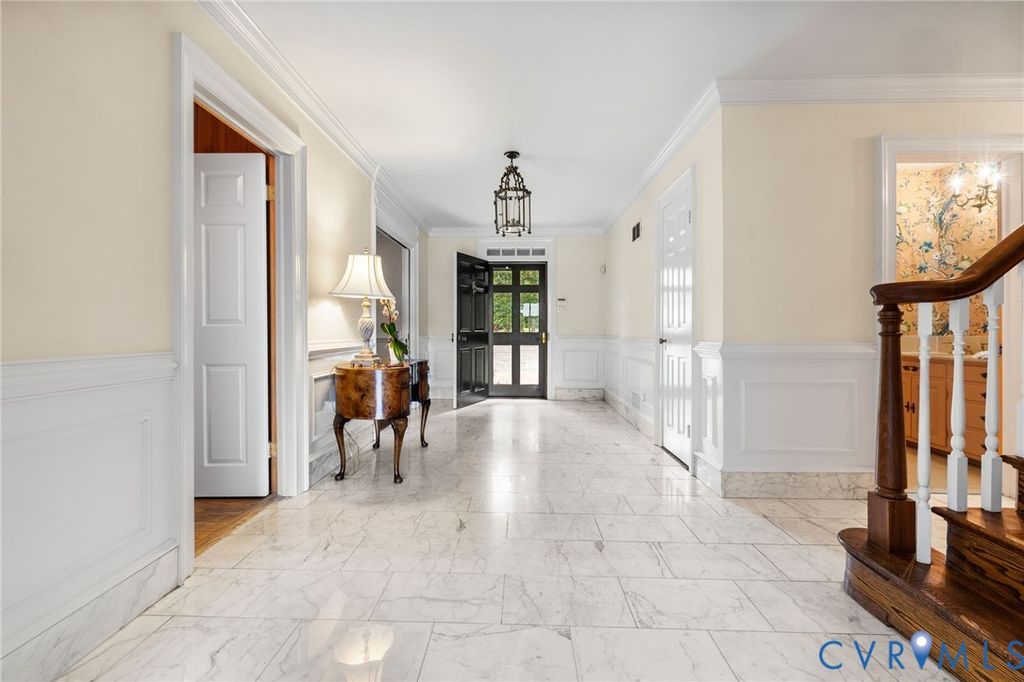 Perched on a 2.2 acre tree lined parcel with exceptional Winter Views of the James River, this expansive brick home with slate roof offers well scaled living and entertaining spaces for the most demanding owner. A rare floorplan provides first and second floor primary suites which affords comfort for multi-generational living or perhaps a caretaker or AuPair. Gracious formal rooms create a lovely setting for entertaining and family gatherings. A bright white, center island kitchen has an adjoining butlers pantry providing great prep space and exceptional storage for that gourmet cook. There are 6 bedrooms and 6 full baths.A warm Library with Black Walnut paneling and one of 3 fireplaces also leads to a brick terrace. A generously scaled Family room with pine paneling, fireplace and wetbar leads to a light filed solarium with beautiful River views.A sunken living room with third fireplace has beautiful river views, Hardwood floors and doorway leading to brick terrace.There is an attached 2 car garage.The home is located just steps from the Pony Pasture Park and is a quick 10 min drive to St Catherines, St Christopher, Trinity and University of Richmond campuses. Avaialble for immediate occupancy, there are areas waiting for the new owners personal touches.Come see, come fall in love with this rare property which provides a most sought after sanctuary plus an additional parcel along the waters edge Id #C004-0049-048.
