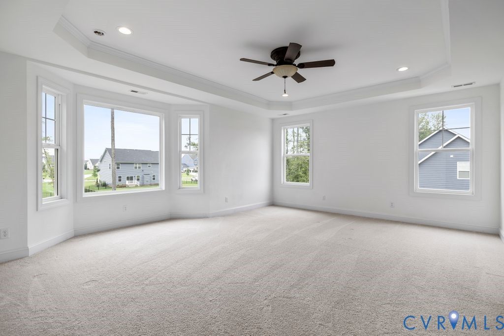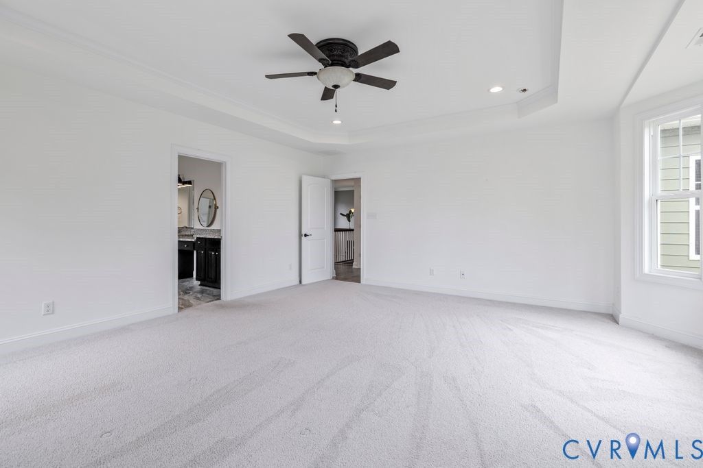Welcome to 11655 Riverboat Drive, a beautifully designed Lancaster model by Main Street Homes offering over 4,000 square feet of refined living in Meadowville Landing. Built in 2022 and situated on a spacious 0.60-acre lot, The Lancaster features 5-bedrooms, 4-bathrooms. The main level features hardwood floors, 10+ ft ceilings, a private office, formal dining room with detailed trim, a stunning living room highlighted by a 25-ft coffered ceiling with expansive windows throughout that boast natural light and the gas double-sided fireplace in the screened porch. The chef's kitchen is both elegant and functional, showcasing granite countertops with stunning backsplash, a large center island, gas cooking, double ovens, custom cabinetry, and a butler's pantry with an eat in kitchen. A first-floor bedroom with full bath is perfect for multigenerational living or a guest suite with convenient main-level living. As you make your way up upstairs, you'll notice the spacious loft area which is perfect for play, work & relaxation. The the primary suite serves as a true retreat with a spacious bedroom and elegant bathroom featuring a soaking tub, rain-style walk-in shower, dual vanities, and an oversized walk-in closet. The 2nd level also is complemented by 2 additional bedrooms, full bathroom with tiled shower flooring and shower walls. The finished third floor offers another private suite with a generously sized walk-in closet, fireplace and a full bath"” The possibilities are endless! Enjoy the screened-in porch, fully fenced backyard, perfect for entertainment, a 2.5-car side-entry garage, and access to Meadowville Landing community amenities including a pool, clubhouse, walking trails and river access with public dock"”offering space, privacy, and lifestyle in one exceptional Chester location. Just a short drive to shopping, dining, 295 & i-95. Come see what this home has to offer & make it your new home today!