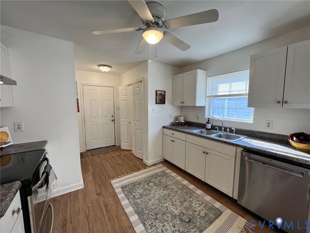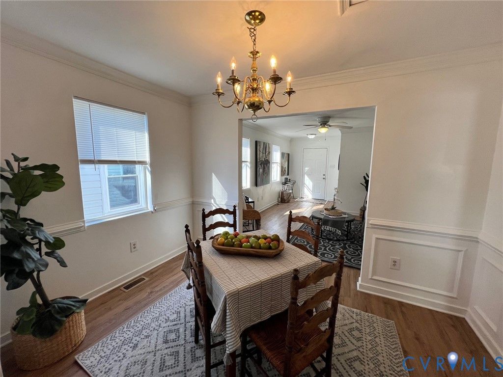 Opportunity awaits in sought-after Woodland Heights! Such a great location just two blocks off of Semmes Avenue and just minutes from Downtown Richmond. Enjoy one level living in this 3 bedroom cottage style home. Great flow from the living room through the dining room and into the kitchen. Fresh paint. Wood-like LVP flooring throughout. Crown molding in the kitchen and dining room and chair rail with panels below in the dining room. Crisp white kitchen cabinets with new GE dishwasher and newer GE electric range (seller is offering a $2,000 CREDIT to Purchaser to buy a refrigerator, washer, and dryer). NEW HVAC system! Fully fenced rear yard. OFF STREET PARKING for 3 cars via the rear alley. Low maintenance vinyl windows and siding. Full front porch with great neighborhood views. A half a block from Carter Jones Park. With its proximity to downtown, local parks, the James River, local coffee shops and restaurants, this home offers the perfect balance of tranquility and city convenience.