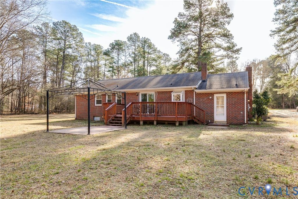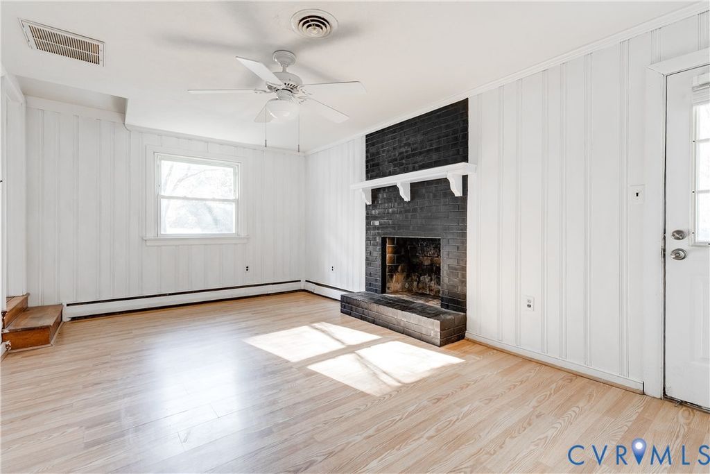 Beautiful brick ranch on nearly 5 acres in Richmond Heights! You are sure to love the hardwood floors, updated kitchen & bathrooms, and large lot all within minutes of downtown Richmond. Step in from the front porch to a bright living room with large picture window then through to the renovated kitchen with granite counters, stainless steel appliances, and an eat-in dining area. The kitchen flows seamlessly to the back deck and rear patio. Off the kitchen and living room is a cozy, spacious family room complete with a brick fireplace. Laundry room has ample storage and doorway to the back yard providing an excellent space to drop dirty shoes before coming inside. Down the hall are three nicely sized bedrooms along with a nicely updated hall bathroom. The primary bedroom is complete with a renovated en suite bathroom including tile floors and shower wall. Large storage shed in the back yard provides additional storage for lawncare equipment, tools, etc. Enjoy the privacy of a large lot with the convenience of being close to downtown!