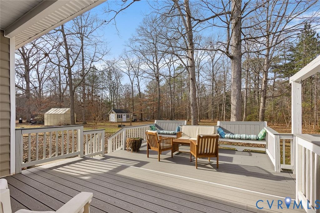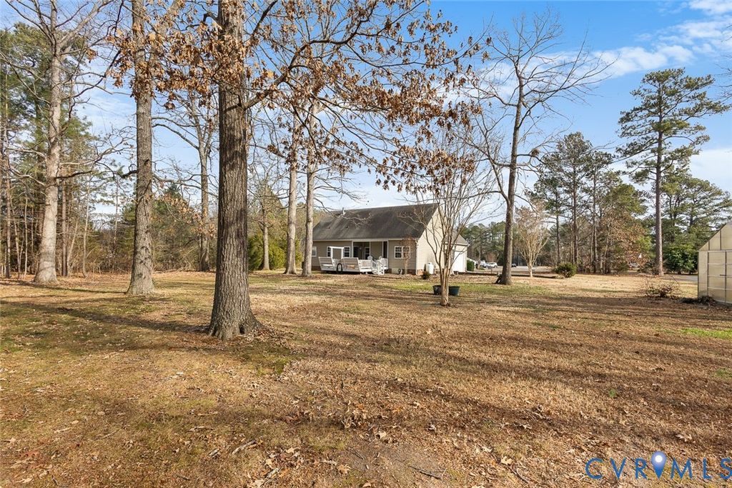 BEAUTIFUL 3 BEDROOM 2 BATH RANCH HOME IN HENRICO COUNTY IS READY FOR NEW OWNERS! Step in to the foyer from the 19X4 front porch to find the family room with gas FP that opens to the eat in kitchen featuring GRAN C/TOPS, SS appliances, tile backsplash, a breakfast bar and a large dining space. Just off of the kitchen is the formal dining room (currently used as a study/den space) as well as the laundry room with storage and access to the garage. As you head down the hallway you will find the primary bedroom with a sitting room as well as an ATT bath (double vanity with storage, toilet, easy entry tiled shower) and 7X6 WIC. The primary suite also boasts a gas FP that can be seen from both the bedroom and the sitting room. Bedrooms 2 and 3 as well as the full hall bath (single vanity w/storage, toilet, tub/shower) complete this space. The large deck (with composite decking) provides a great space to relax and enjoy the view of the wooded, private back yard. The DET shed (with power) provides extra storage space and the greenhouse (also with power). NEWER LVP throughout main living spaces (2022), RV pad (2022), COMPLETE REMODEL of both baths (2023, NEWER water treatment system (2022, NEWER HVAC and hot water heater (2022), composite deck (2023), alarm system. Located close to shopping, dining and the interstate and centrally located between Richmond and Williamsburg. SCHEDULE YOUR TOUR TODAY!