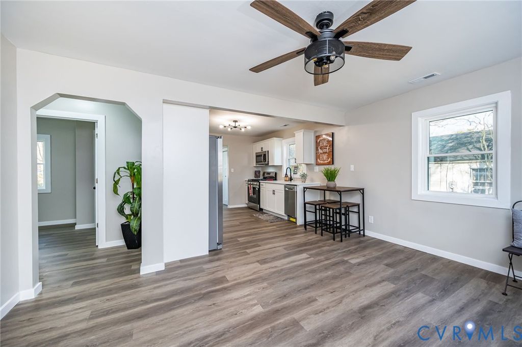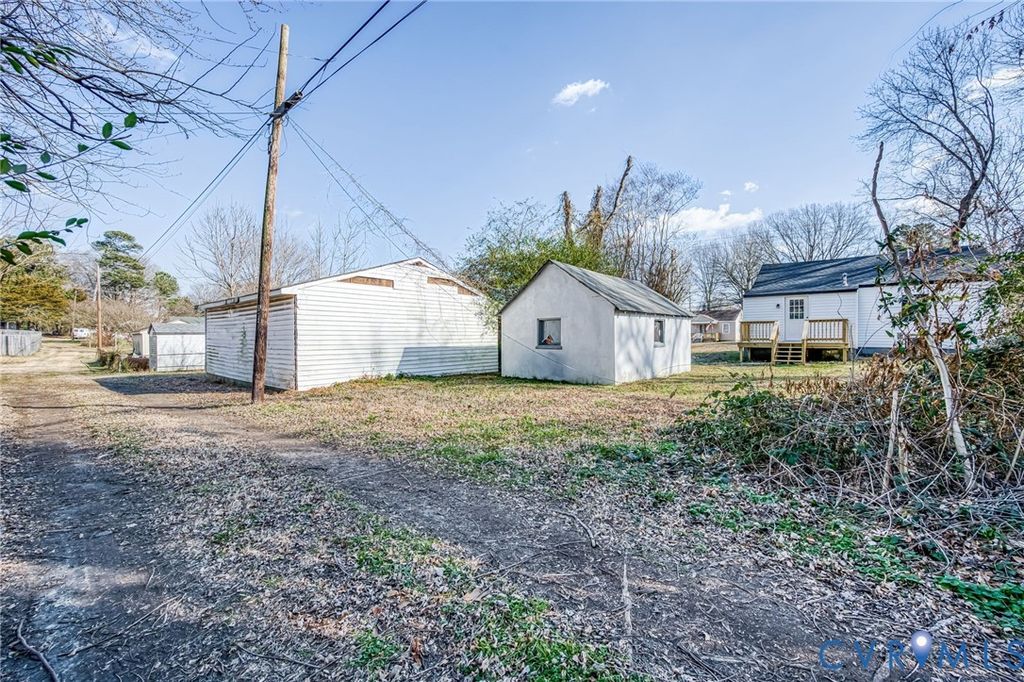 Welcome Home to this Beauty! Completely Renovated Bungalow blends Classic Charm with Modern Updates! You will love the bright, open floor plan ideal for everyday living and perfect for entertaining. A wide front porch yearning for rockers, welcomes you in-- once inside, the spacious Family Room & Dining Area flows effortlessly into the reimagined kitchen with new white Shaker cabinetry, Quartz countertops, and brand new Stainless-steel appliances. Lovely, Durable LVP flooring runs throughout the family room, kitchen, separate laundry/mudroom, and both bedrooms. Exquisite, all-new bath features a new tub/shower, toilet, vanity, and ceramic tile flooring. Peace-of-mind upgrades abound: all-new plumbing fixtures and lighting throughout, fresh interior paint, new vinyl siding, new windows, new roof, new HVAC, and a new water heater. The rear mudroom leads to the brand-new deck, great for grilling or relaxing. Enjoy a large level and fairly private yard, perfect for gardening, pets, or play. A detached garage/shed provides storage or workshop potential. Rear alley access adds convenience and an option to create a secondary driveway or off-street parking. Don't miss out on this Move-in ready, one-level living home with low-maintenance finishes and flexible spaces for a home office or hobbies. Convenient to the Fort Lee/ Gregg-Adams military base, both the Appomattox and James Rivers, shopping, dining, parks, and commuter routes"”enjoy turnkey comfort, indoor-outdoor flow, and modern style in a timeless package.