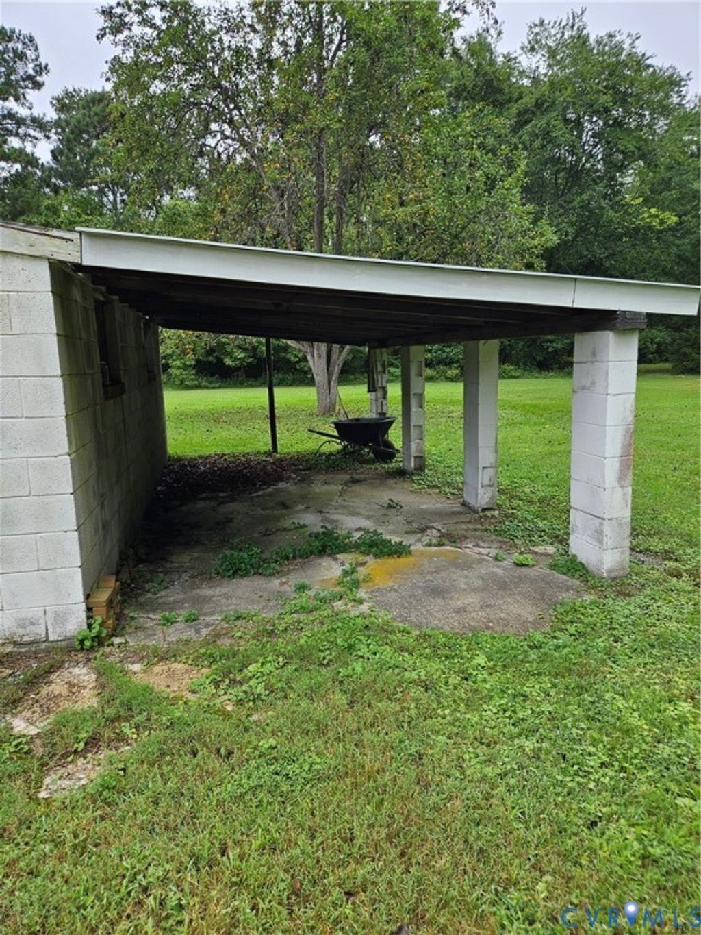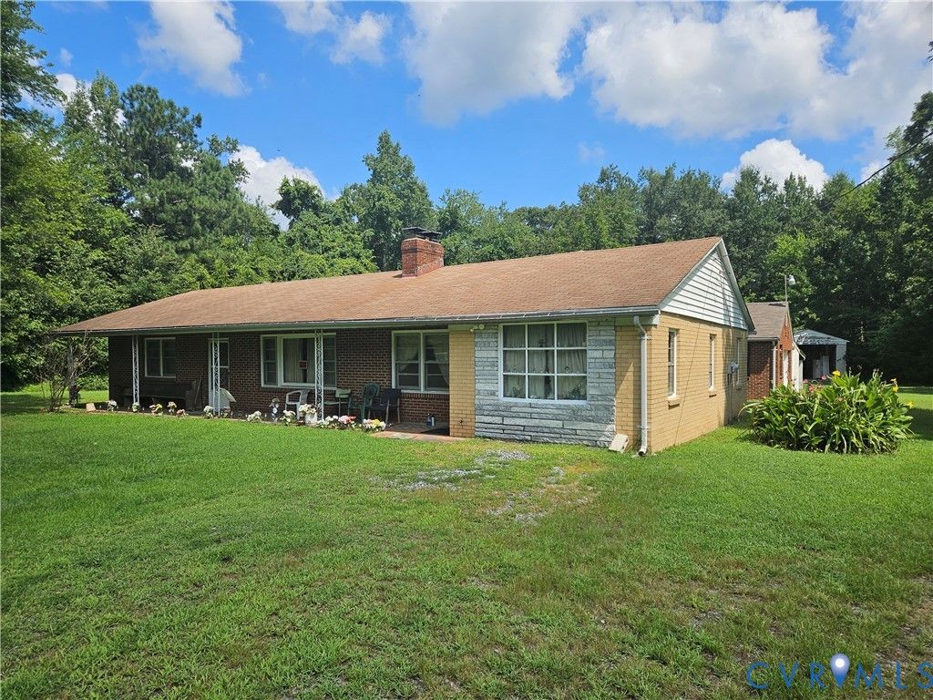 Work and save!!! Enjoy the peace and quiet that this 2.41 +/- acres offers. Fronts on a major secondary road and only about 5-6 miles from I-95 at Kings Dominion. Approximately 1/2 mile off of Rt 301. Close to Rt. 1 also. Close to Hanover Courthouse area. Verify Schools and tax information. Split BR design. Wood burning fireplace with floor to ceiling brick hearth. Wood-stove insert in the fireplace on the other side with floor to ceiling brick hearth. Covered front porch. Brick and stone exterior. Heated Detached Garage, shed, and lean to with concrete flooring. Second Cinder block building that was used for a large boat storage, also with concrete flooring. Vegetable sink in the laundry room. Newer hot water heater. Oil furnace has been serviced regularly. Stainless refrigerator and gas range in the kitchen. There is an extra mini refrigerator in the laundry room, and a full-sized refrigerator in the garage. There is a dryer in the garage. There is a freezer in the boat storage building behind the garage. All appliances convey Strictly as-is. Sliding glass doors out of the DR to the back yard.